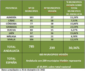 En Andalucía son ya 239 los municipios que forman parte del Sistema VioGén, el 30,3% de los 785 que conforman la comunidad y el 35,9% del total nacional en el Sistema, que se elevan a 665. Para Pedro Fernández, “estas cifras reflejan el interés de los municipios andaluces por unir fuerzas y por establecer todas las medidas posibles para luchar contra la violencia machista, pero aún debemos ir más allá y continuar ampliando la red para lograr erradicarla definitivamente”.