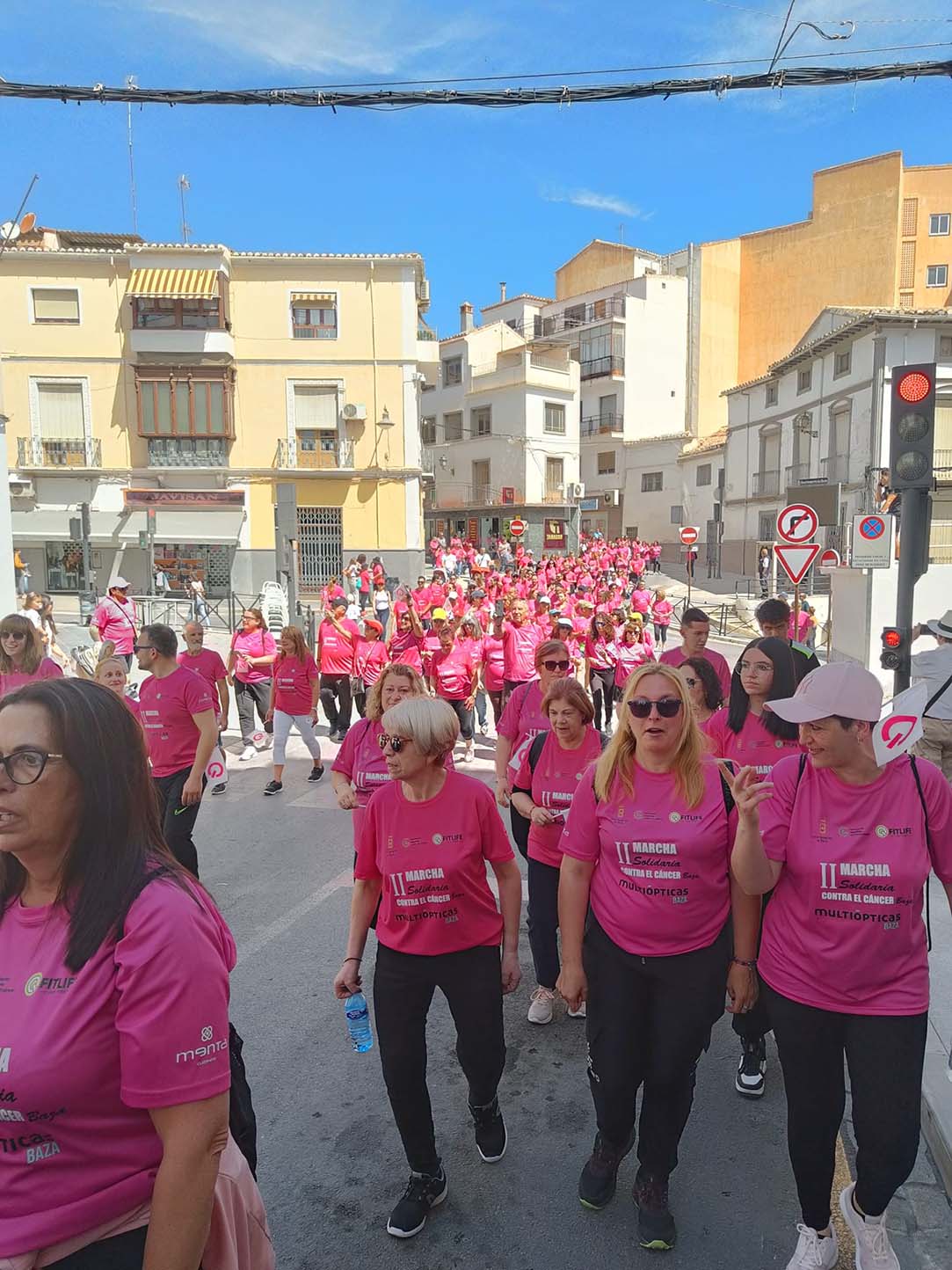 La ciudad de Baza se vestía ayer de rosa para manifestar su apoyo al trabajo que se realiza desde la AECC con la II Marcha Solidaria Contra el Cáncer, que recaudó 24.015€. A las once de la mañana de ayer domingo empezaba a caminar, desde el paseo central del Parque de la Alameda, la II Marcha Solidaria Contra el Cáncer de Baza, en una agradable mañana, en la que las calles de nuestra ciudad se llenaron con una cifra superior al millar de participantes, ataviados con las camisetas rosas y unidos por el mismo afán de colaborar en la lucha contra esta enfermedad, ante la que la AECC centra todos sus esfuerzos, al igual que hace en Baza su Junta Local y ese tesoro que son los voluntarios y voluntarias que se agrupan en torno a ella.