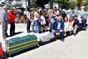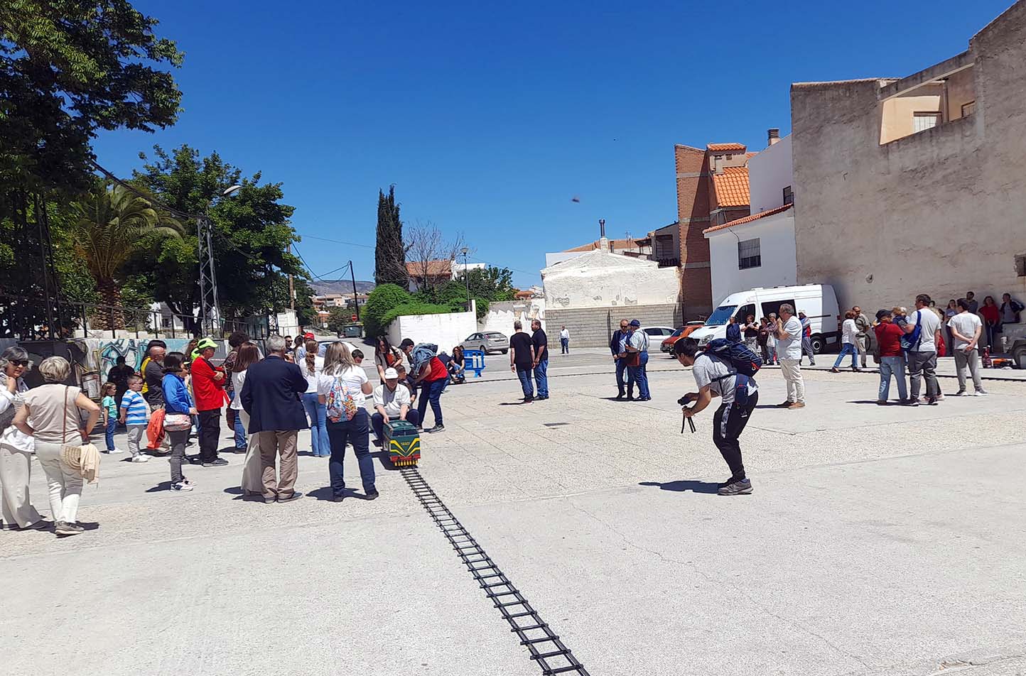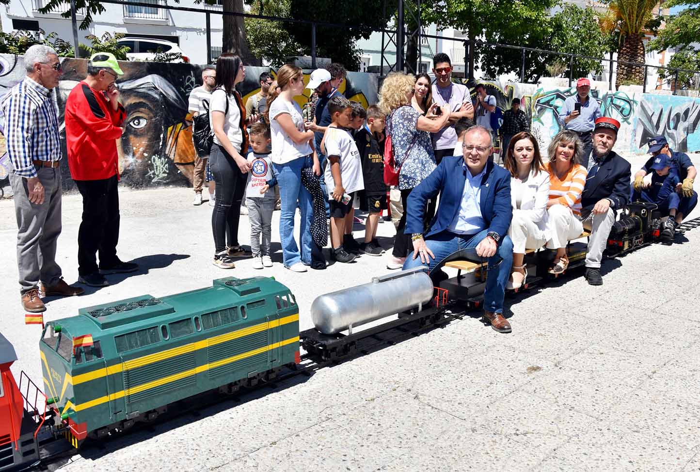 Finalizado el acto oficial, los asistentes disfrutaron de un circuito cerrado de mini tren instalado en el solar de la caseta municipal, con tres locomotoras y varios vagones, al que niños y mayores subieron, para dar un paseo que fue muy de su agrado.