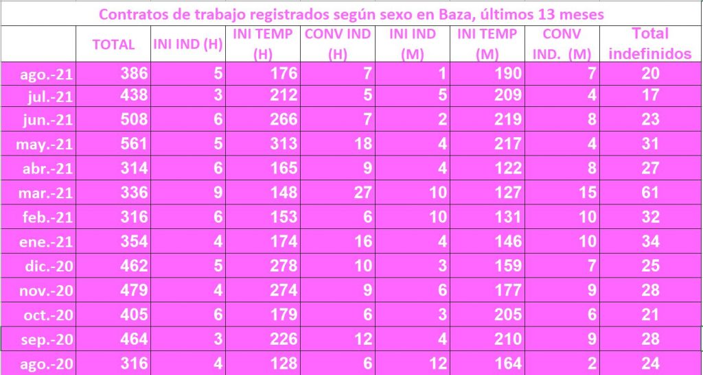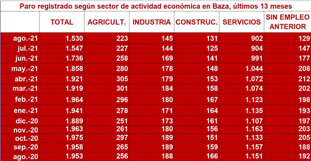 Leve disminución en las cifras del paro, al finalizar el mes de agosto. Al finalizar el pasado mes de agosto, las cifras del par en nuestra ciudad dejaban ver una mínima mejora por la que han sido 17 personas las que mejoraron su situación laboral, encontrando empleo y alcanzando un total de 1.530 desempleados en Baza, tras la notable mejora del mes anterior.