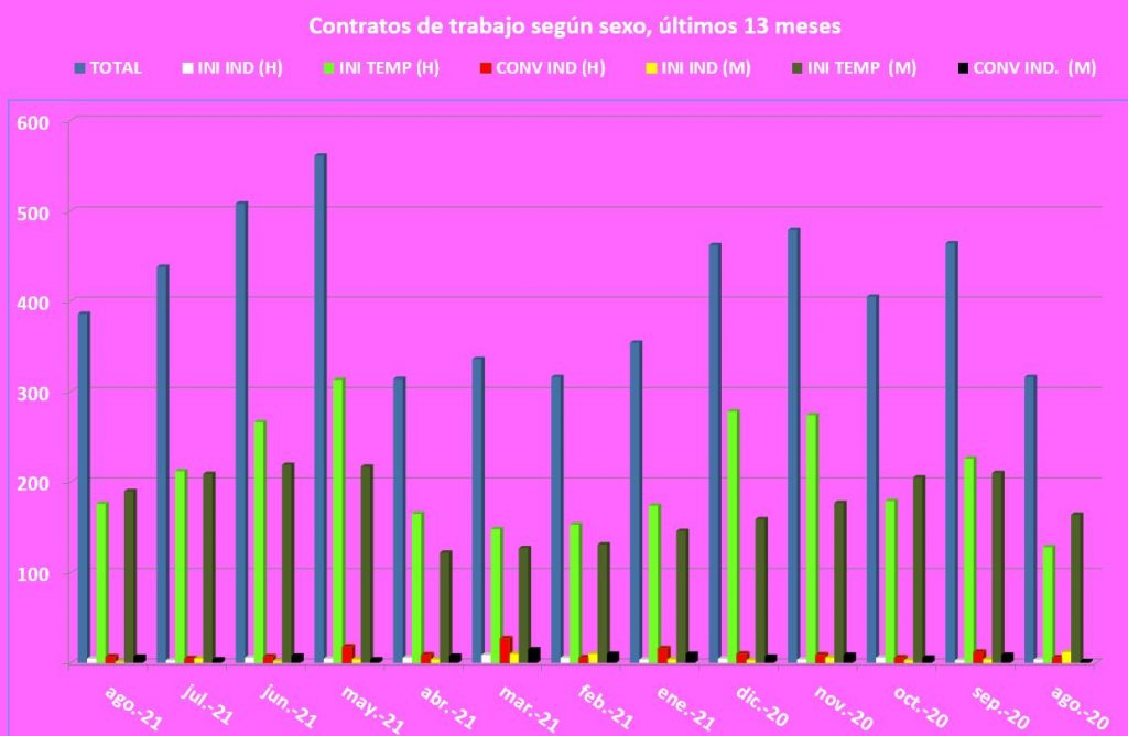 De hecho, en este último mes se han producido 20 contratos indefinidos, de los que 14 eran personas ya empleadas (7 hombres y 7 mujeres), mientras que solo 5 hombres y una mujer empezaron una relación laboral con carácter indefinido.
