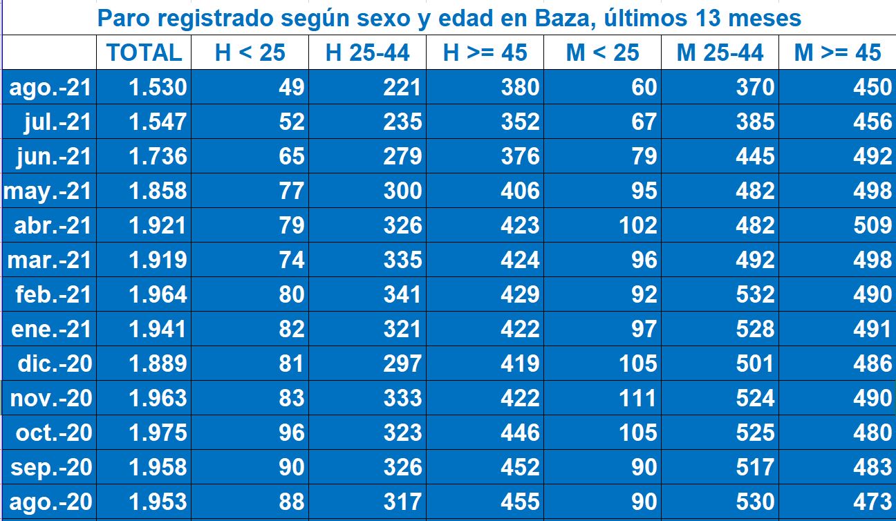Leve disminución en las cifras del paro, al finalizar el mes de agosto. Al finalizar el pasado mes de agosto, las cifras del par en nuestra ciudad dejaban ver una mínima mejora por la que han sido 17 personas las que mejoraron su situación laboral, encontrando empleo y alcanzando un total de 1.530 desempleados en Baza, tras la notable mejora del mes anterior.