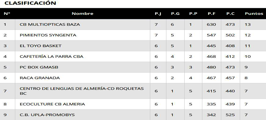 El último cuarto fue un querer y no poder para el conjunto local, que presionaba a toda pista a los bastetanos, pero donde los de Baza pudieron zafarse con la agresividad que los caracterizó durante todo el partido, llegando al final con un corto 63-76, pero que suponía una victoria importantísima que coloca líder al Multiópticas en esta primera parte de la liga.