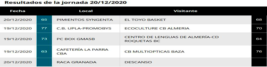 Resultados y clasificación de la Primera División Nacional Andaluza de Baloncesto, en el grupo C: