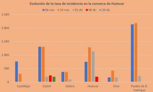 Igualmente, ofrecemos una segunda tabla con la evolución de la tasa de incidencia en las diferentes comarcas de nuestro distrito y en todos sus municipios, datos en los que se puede ver fácilmente como se va avanzando en la situación de los casos producidos en los 14 últimos días y la correspondiente tasa de incidencia de cada uno de ellos.