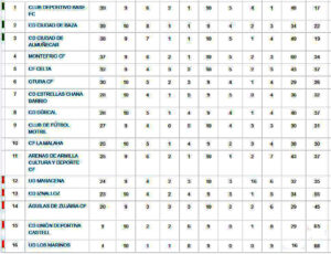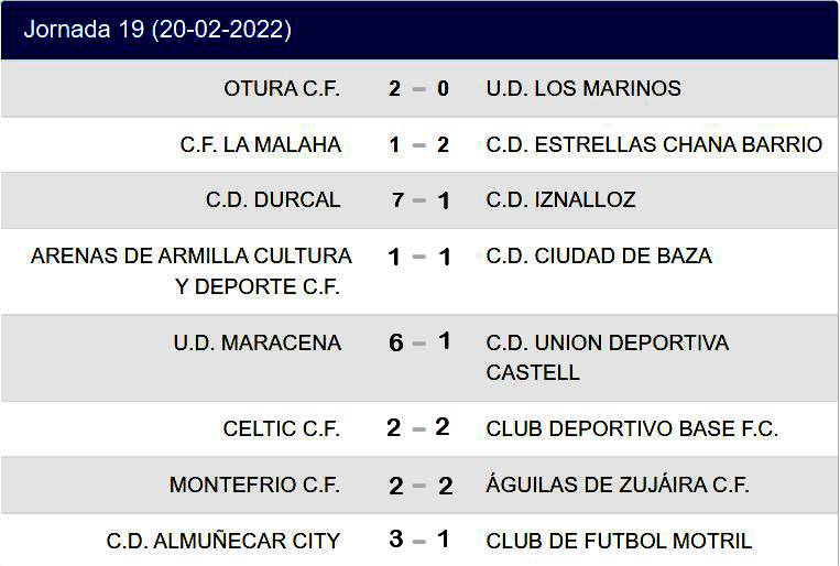 Resultados y clasificación tras la jornada 19 en el grupo granadino de la Segunda Andaluza Sénior de fútbol (Clicar en las imágenes para ampliar):