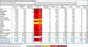 También en el AGS Nordeste bajaba la tasa a 7 días en los mismos 7,2 casos y se seguían rebajando casos de pacientes pendientes de curación, que en esta jornada fueron 227 las altas producidas y 157 los casos que se descontaron del total que ahora ha pasado a ser de 3.114 personas pendientes de curación.