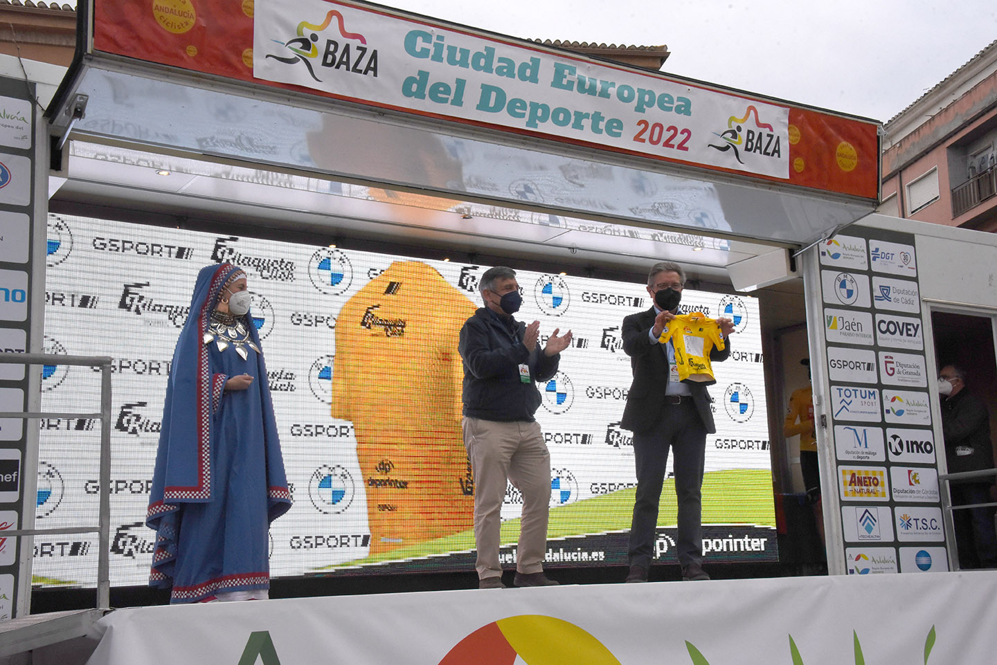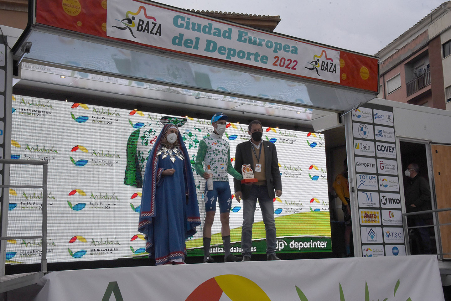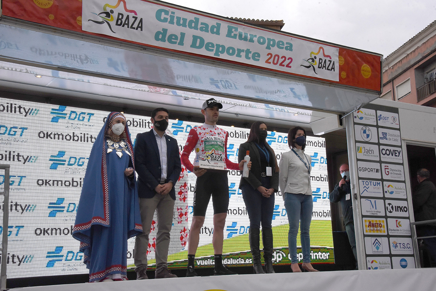 Entre las autoridades que entregaron los trofeos, además del alcalde Manolo Gavilán y de los concejales de Deportes y Economía, Antonio Vallejo y Alfredo Alles, se encontraban el diputado provincial de Deportes, Manolo Guirado; la subdelegada del Gobierno en Granada, Inmaculada López Calahorro; el director general de la Vuelta, Joaquín Cuevas; o el presidente de la Federación Andaluza de Ciclismo, Manuel Rodríguez. Y entre los patrocinadores, una marca con sello bastetano: “Dos Vegas”, empresa afincada en Málaga pero liderada por las hermanas bastetanas Susana y Carmen Vega, quienes no han faltado a la cita de la Vuelta Ciclista a Andalucía en su ciudad.