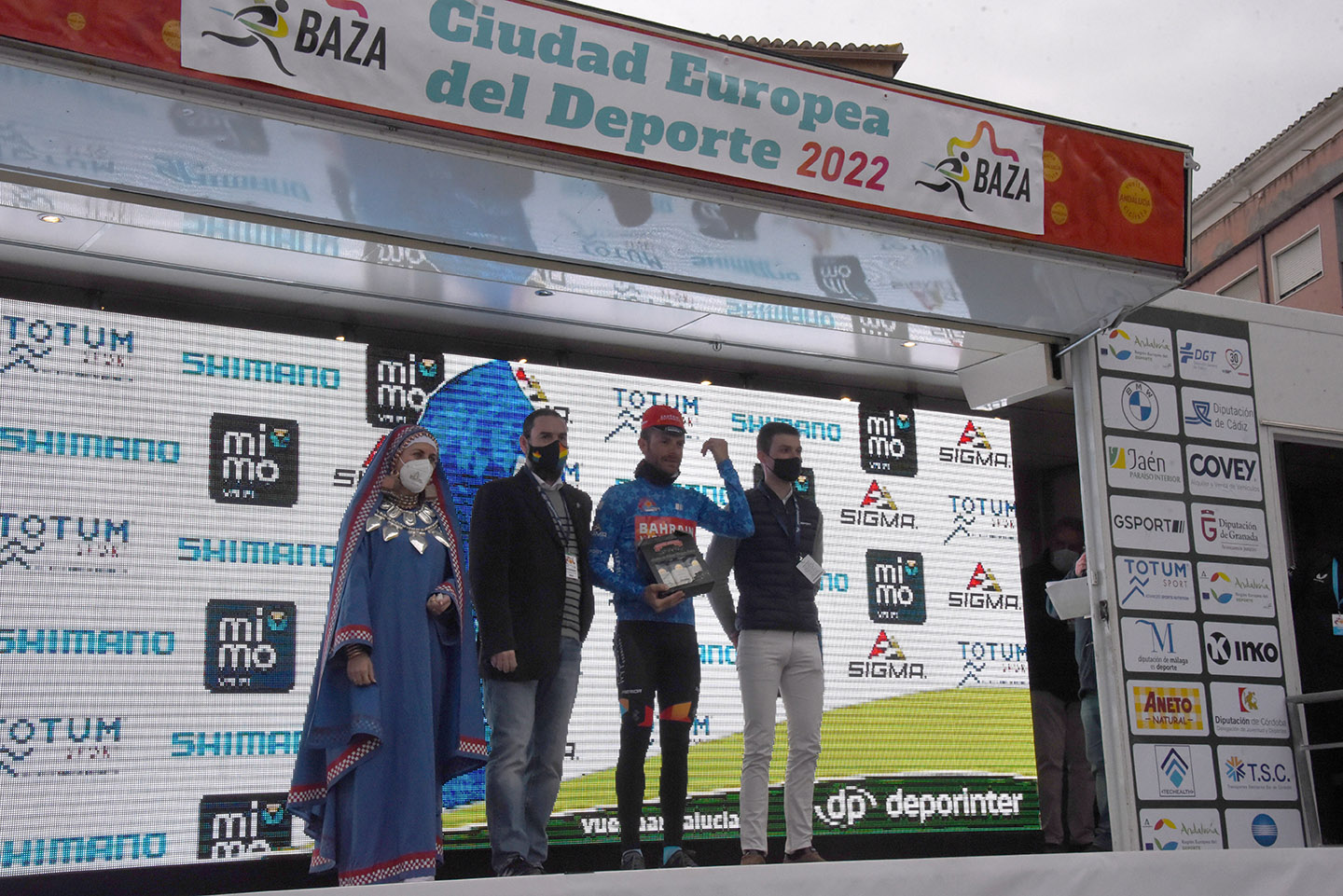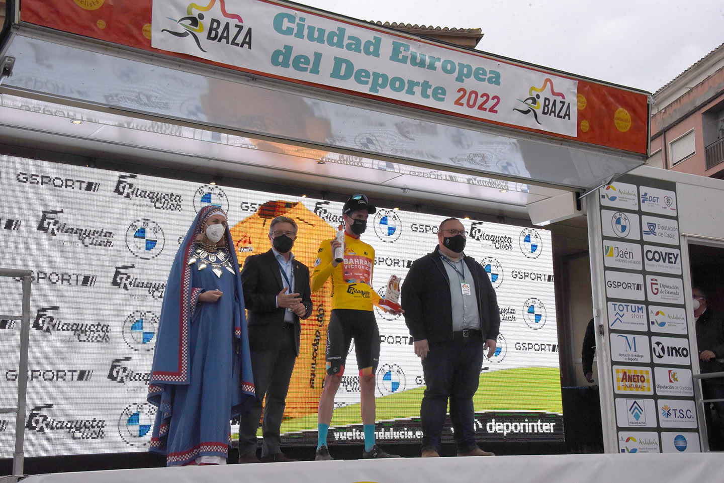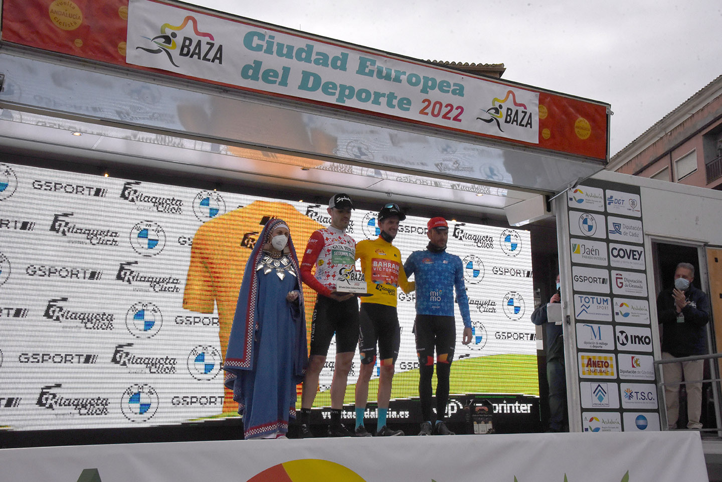 Entre las autoridades que entregaron los trofeos, además del alcalde Manolo Gavilán y de los concejales de Deportes y Economía, Antonio Vallejo y Alfredo Alles, se encontraban el diputado provincial de Deportes, Manolo Guirado; la subdelegada del Gobierno en Granada, Inmaculada López Calahorro; el director general de la Vuelta, Joaquín Cuevas; o el presidente de la Federación Andaluza de Ciclismo, Manuel Rodríguez. Y entre los patrocinadores, una marca con sello bastetano: “Dos Vegas”, empresa afincada en Málaga pero liderada por las hermanas bastetanas Susana y Carmen Vega, quienes no han faltado a la cita de la Vuelta Ciclista a Andalucía en su ciudad.