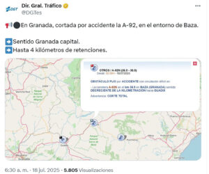 La A-92N es un corredor fundamental para el transporte de mercancías entre Andalucía oriental y el Levante español, lo que incrementa la densidad de tráfico pesado en este tramo. Según datos de la Dirección General de Tráfico (DGT), cerca de un 30% del tránsito diario en este punto corresponde a vehículos de gran tonelaje, lo que aumenta el riesgo de incidentes en caso de colisiones.