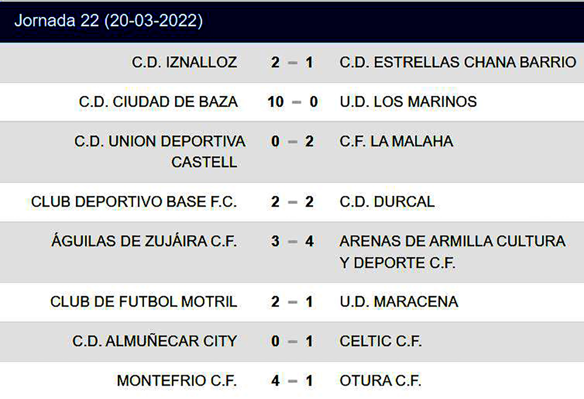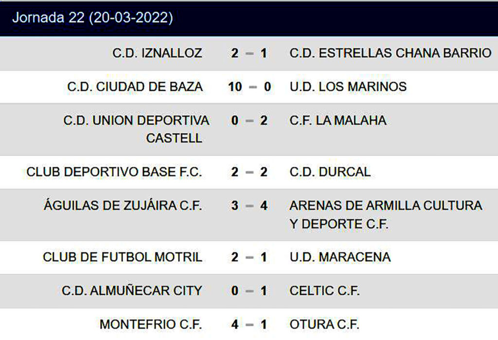Resultados y clasificaciones de la última jornada en el grupo granadino de la Segiunda Andaluza Sénior de Fútbol: