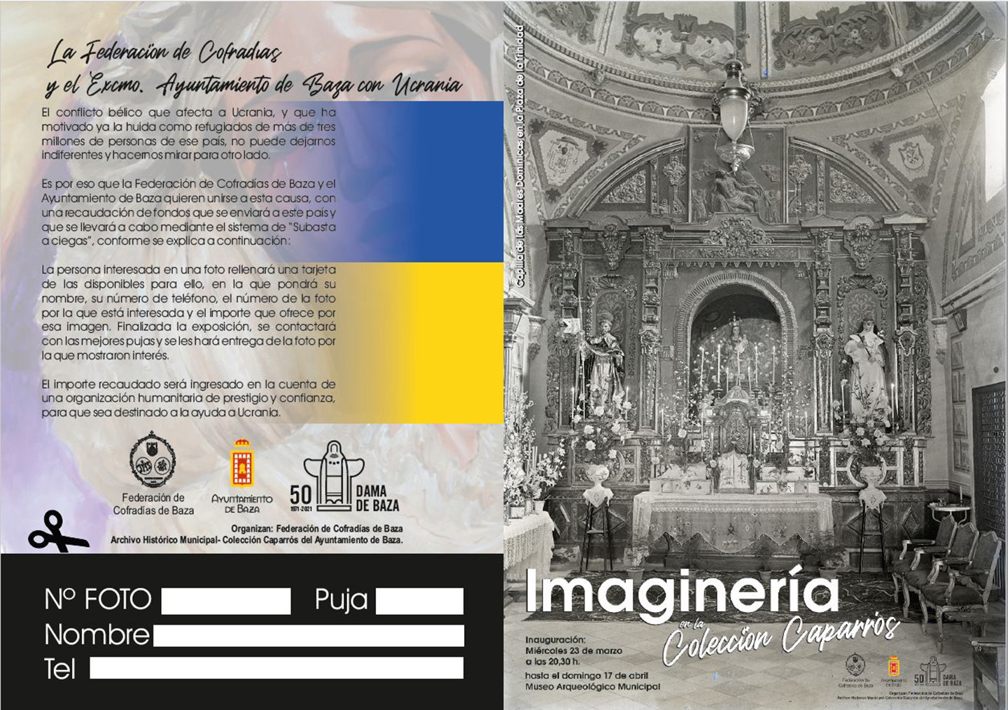 Sensibles al conflicto bélico que afecta a Ucrania, los organizadores han decidido dar carácter solidario a esta exposición, a través de una subasta a ciegas: la persona interesada rellenará una tarjeta en la que pondrá su nombre, su número de teléfono, el número de la foto por la que está interesada y el importe que ofrece por esa imagen. Finalizada la exposición, se contactará con las mejores pujas y se les hará entrega de la foto por la que mostraron interés. El importe recaudado será ingresado en cuenta a una ONG de confianza, para que sea destinado a la ayuda a Ucrania.