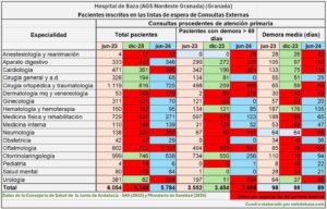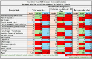 Mientras tanto, en Baza la situación ha cambiado, a mejor en unos aspectos y a peor en otros, lo que vamos a tratar de desgranar con unas tablas en las que diferenciamos dos tipos fundamentales de esperas: para operarse o para consultar a un especialista,
