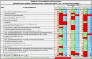 Las listas de espera quirúrgica en el Hospital de Baza mejoran notablemente. Listas que comparamos con la anterior situación en la que los datos fueron facilitados por la Junta de Andalucía, referidos a final de diciembre de 2023, tras empeorar notablemente la situación de seis meses antes, y recuperar menores posiciones a final de junio de 2024.