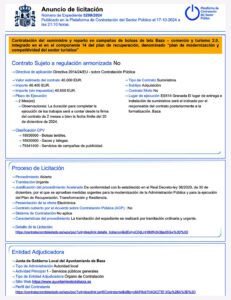 Se podrán presentar ofertas hasta el día 1 de noviembre de 2024 y se puede acceder al detalle del procedimiento en el anterior enlace.