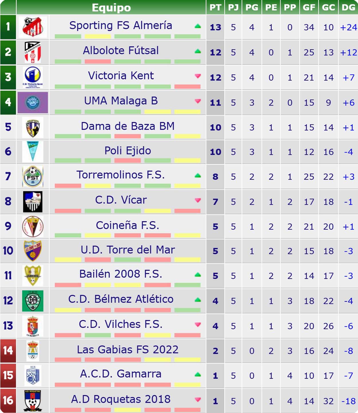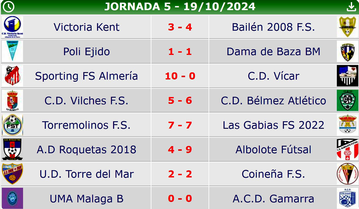 Resultados y clasificación tras la jornada 5. (Clicar sobre las imágenes para ampliarlas)