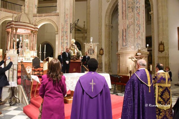 Allí permanecerá hasta el último domingo de abril, mientras cada día, a las 19:30 h., se rezará el Santo Rosario y, a las 20:00 h., se oficiará la Misa y el Oficio de las Rogativas, con los cantos “y demás cultos que de tiempo inmemorial se le dedican”. Ese día, se organizará el retorno de la imagen a su templo, siempre que no llueva, en solemne procesión a la que asisten el resto de las parroquias y la Corporación Municipal bajo mazas, así como todas las Hermandades de la ciudad, siempre que no llueva, pues  en caso de hacerlo permanecería todo igual hasta el siguiente domingo.
