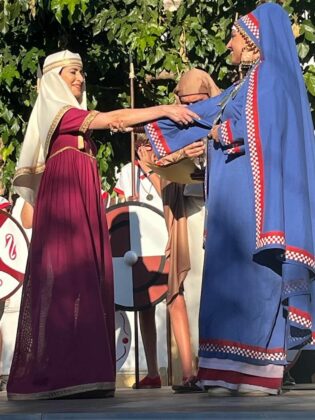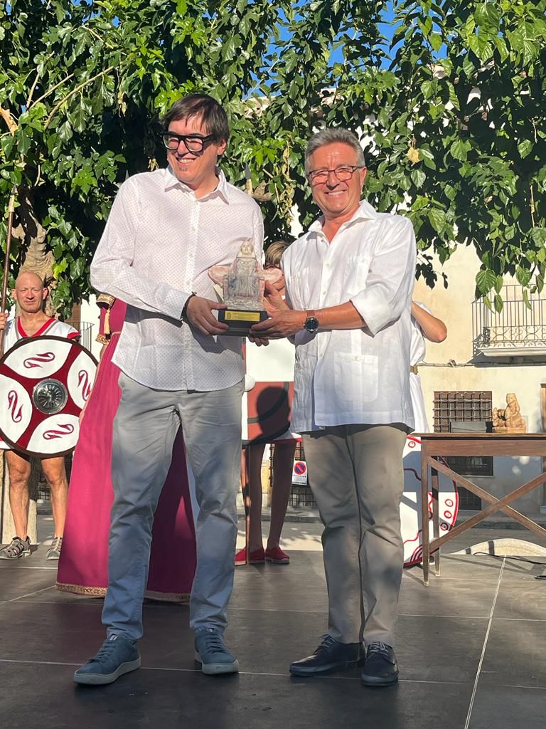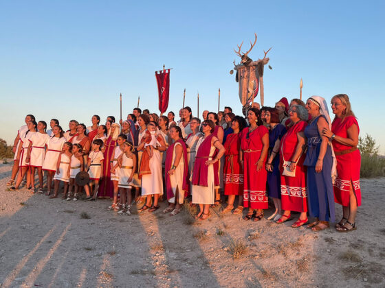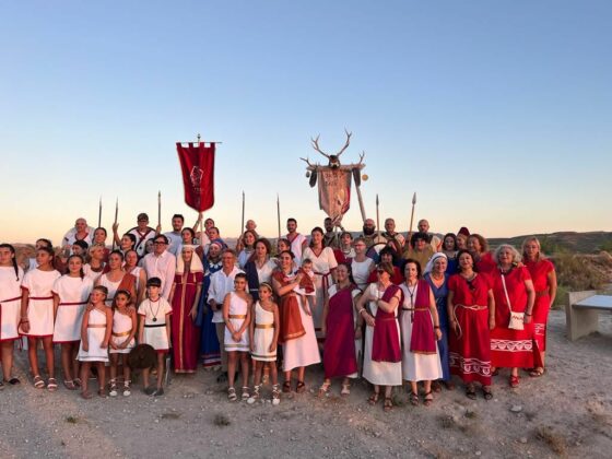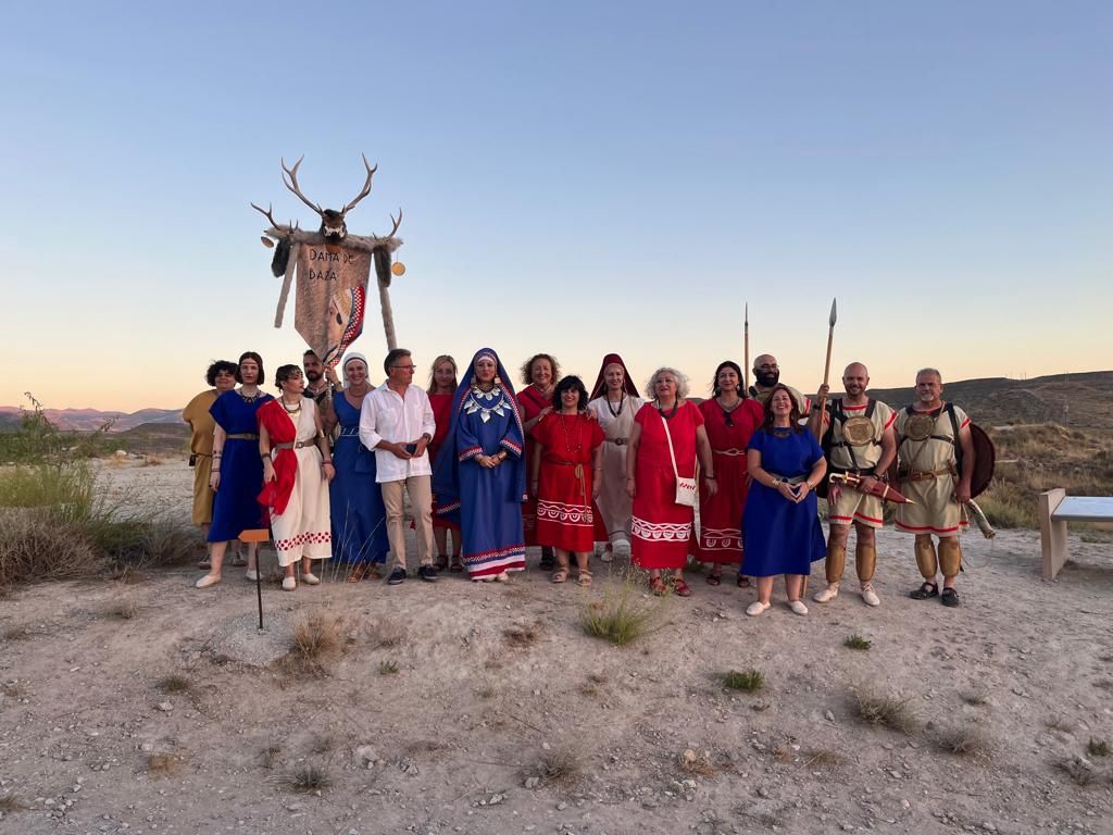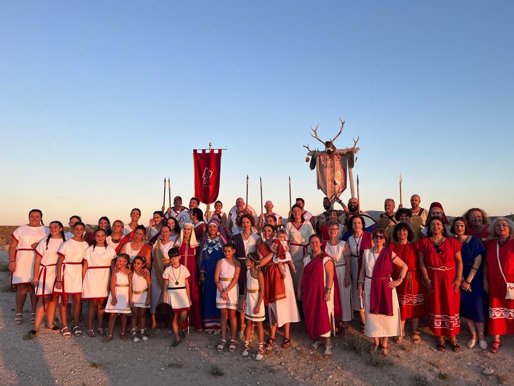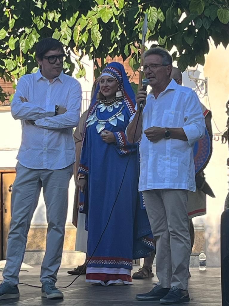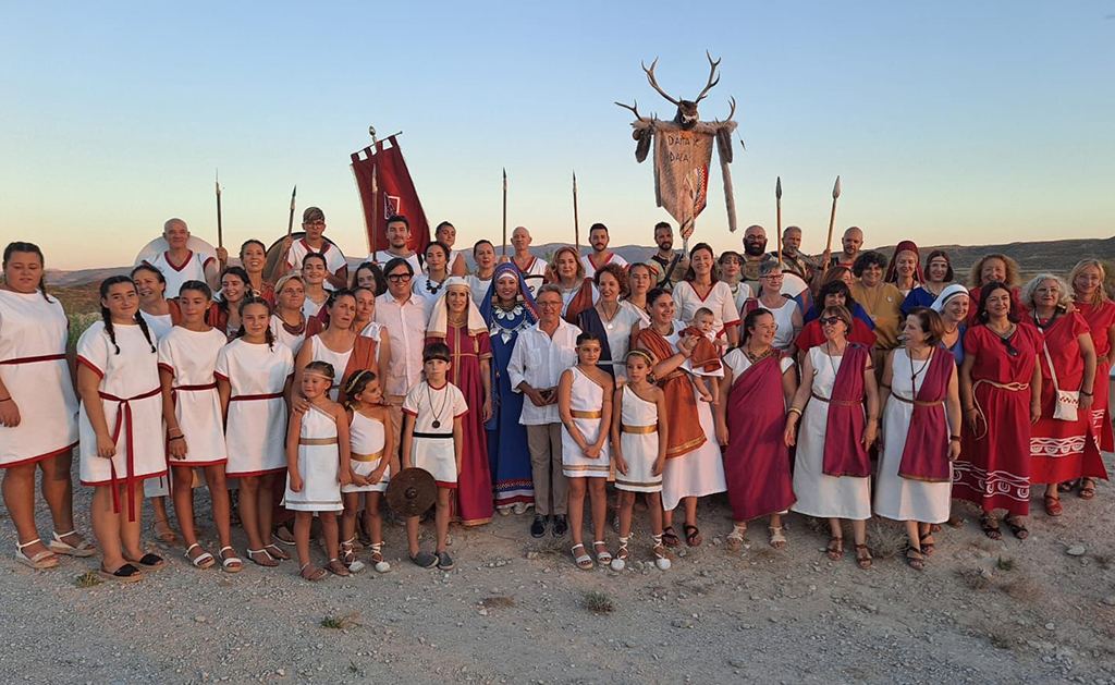 A continuación, el protagonismo del momento fue para las mujeres que representaban a ambas imágenes íberas, quienes fueron las encargadas de realizar un acto simbólico con el que se concretaba este hermanamiento, cuya idea nació a raíz de las colaboraciones realizadas por ambos grupos de íberos en las fiestas íberas que realizan en ambas localidades y que pusieron en evidencia los valores que las unen y la importancia de mantenerlos y cuidarlos para que perduren en sus señas de identidad.