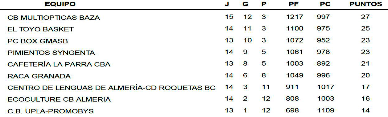 De esta forma, el play-off está a tan solo un paso, pues el conjunto bastetano tiene muy cerca la plaza, a falta de una jornada para finalizar esta liga regular, aunque al resto de equipos les queda una jornada más, en la que a los de Baza les toca descansar.