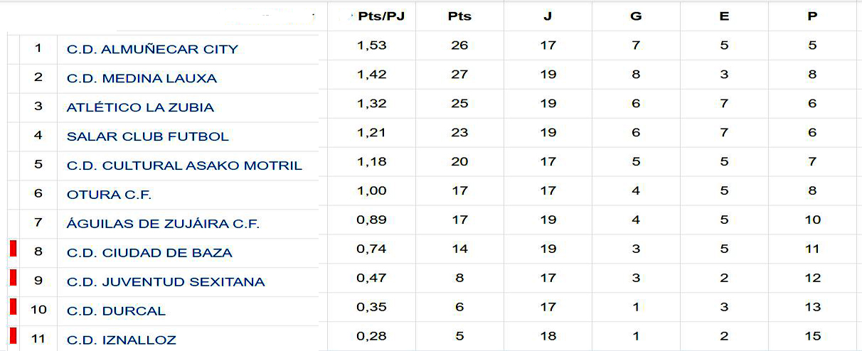En cuanto al encuentro entre inaugural de la fase de descenso, entre CD Dúrcal y CD Ciudad de Baza, fue un partido que los bastetanos tuvieron controlado desde que Ángel Molina lograra batir a Puerta, el meta local, en el minuto 22, logrando un 0-1 que lució en el marcador hasta a falta de un minuto para que se cumpliera el tiempo reglamentario, cuando Juan Manuel batía al bastetano David Bonillo y el equipo bastetano dejaba de sumar dos puntos que le hubieran servido para igualarse con el Águilas de Zujaira que es el equipo que marca la salvación.