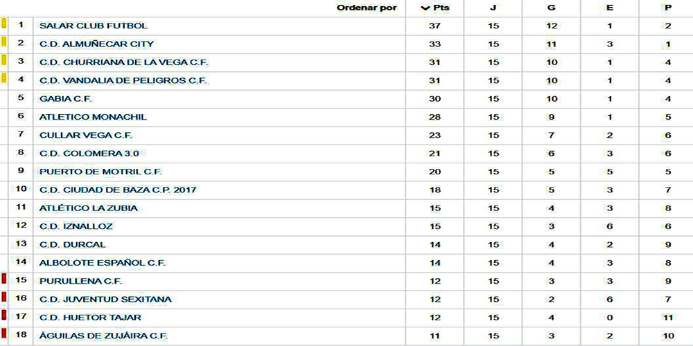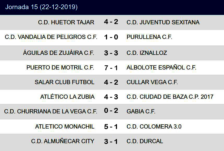Resultados y clasificación del grupo granadino de la Primera Andaluza: