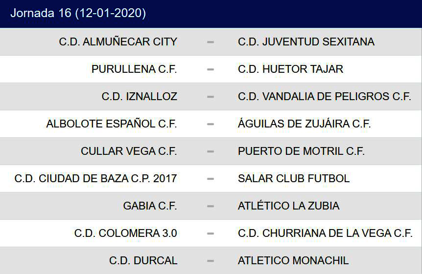 Encuentros a disputar en la próxima jornada del 12 de enero, en el grupo granadino de la Primera Andaluza: