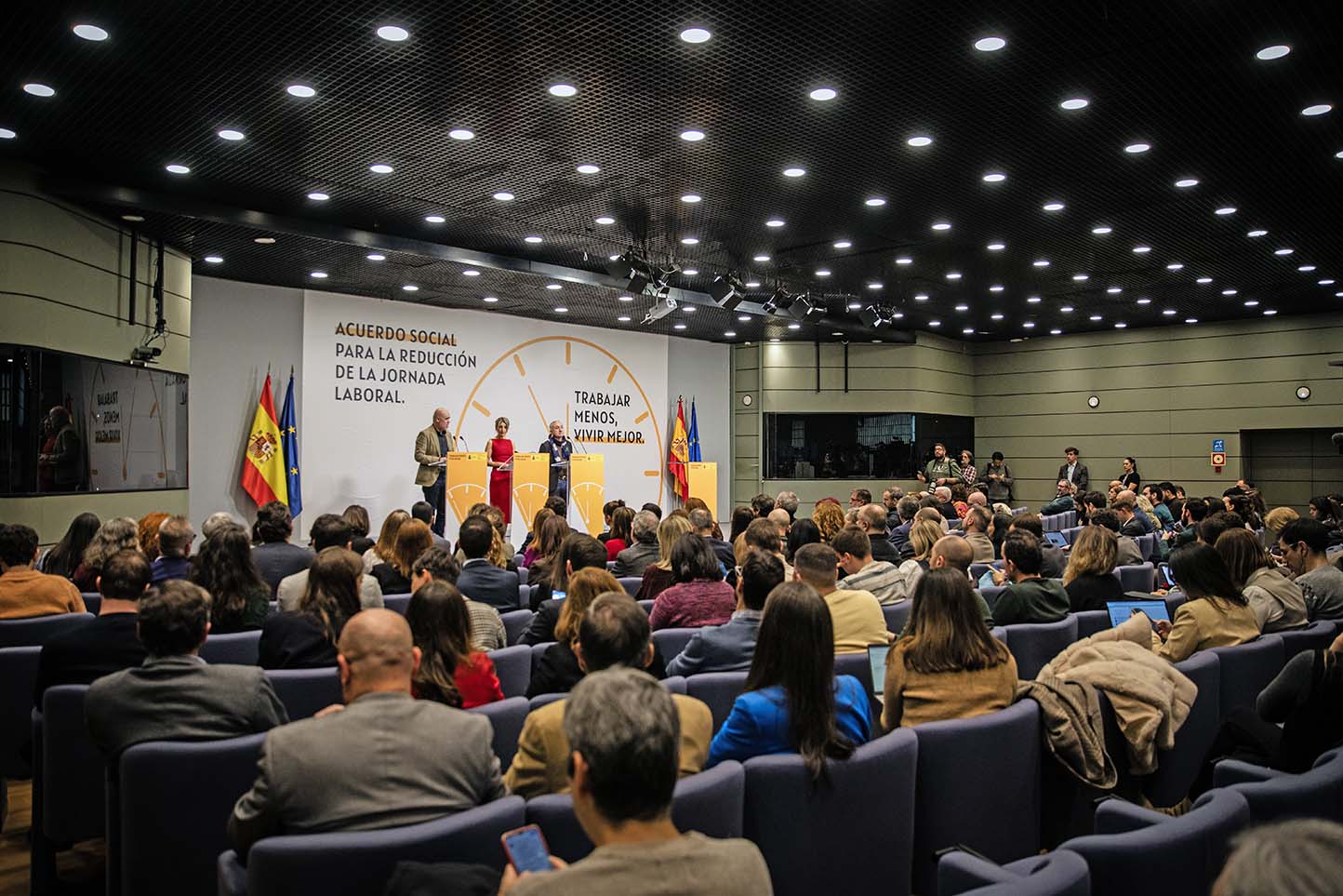 La vicepresidenta segunda del Gobierno y ministra de Trabajo y Economía Social, Yolanda Díaz, junto con los secretarios generales de CCOO, Unai Sordo, y de UGT, Pepe Álvarez, han sido los encargados de rubricar el acuerdo. Díaz destacó la importancia de este avance: «Hoy empezamos a recuperar lo más valioso que tenemos: el tiempo».