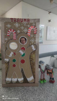Especial mención merece la planta de Pediatría y Ginecología, donde se ha instalado una cesta llena de juguetes, hechos a mano y donados generosamente, para alegrar a los más pequeños que deban pasar estas fechas en el hospital. En el servicio de Urgencias, un acceso iluminado da la bienvenida a pacientes y visitantes, mientras que un simpático photocall traumatológico invita a inmortalizar momentos divertidos y entrañables.