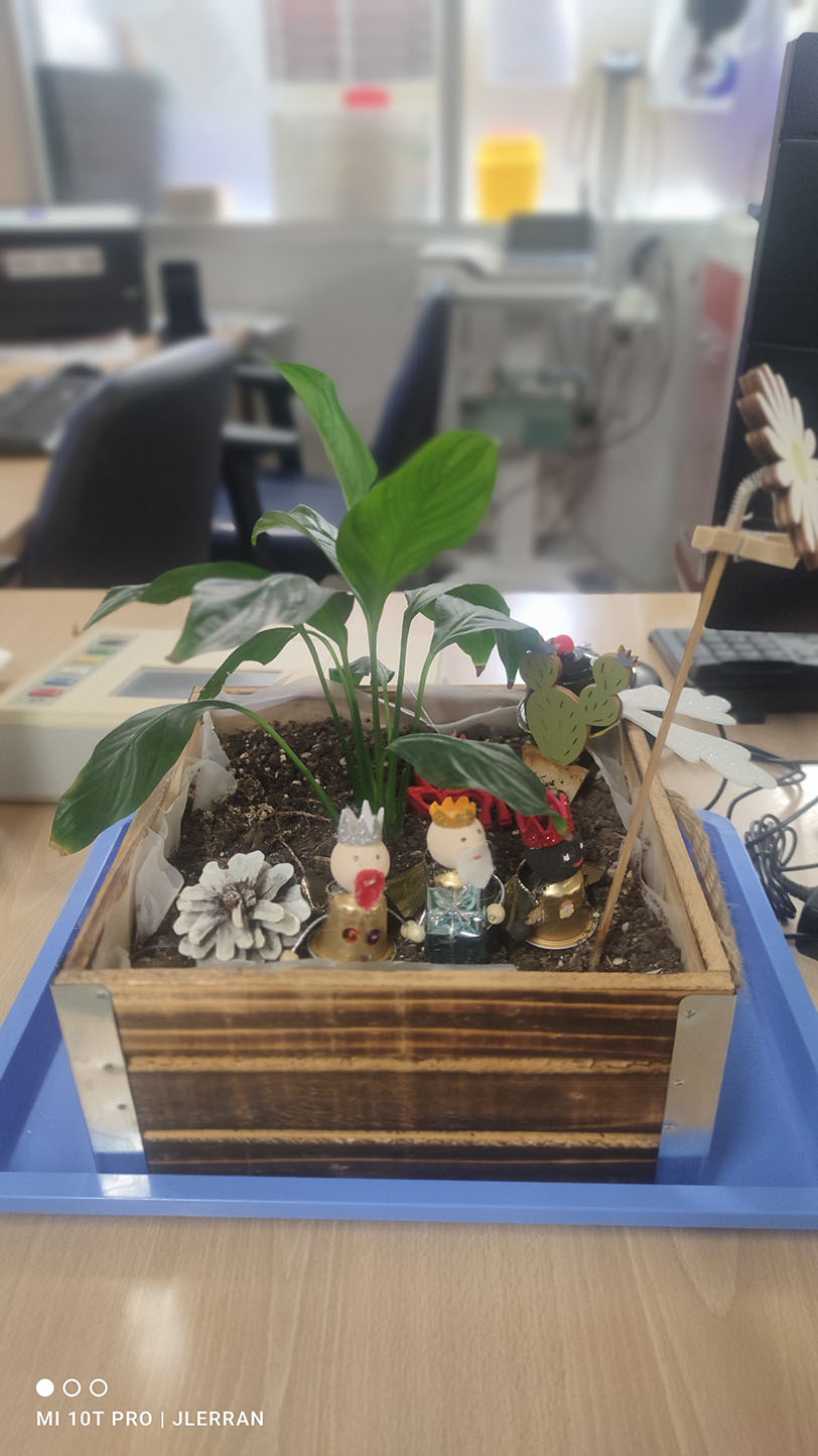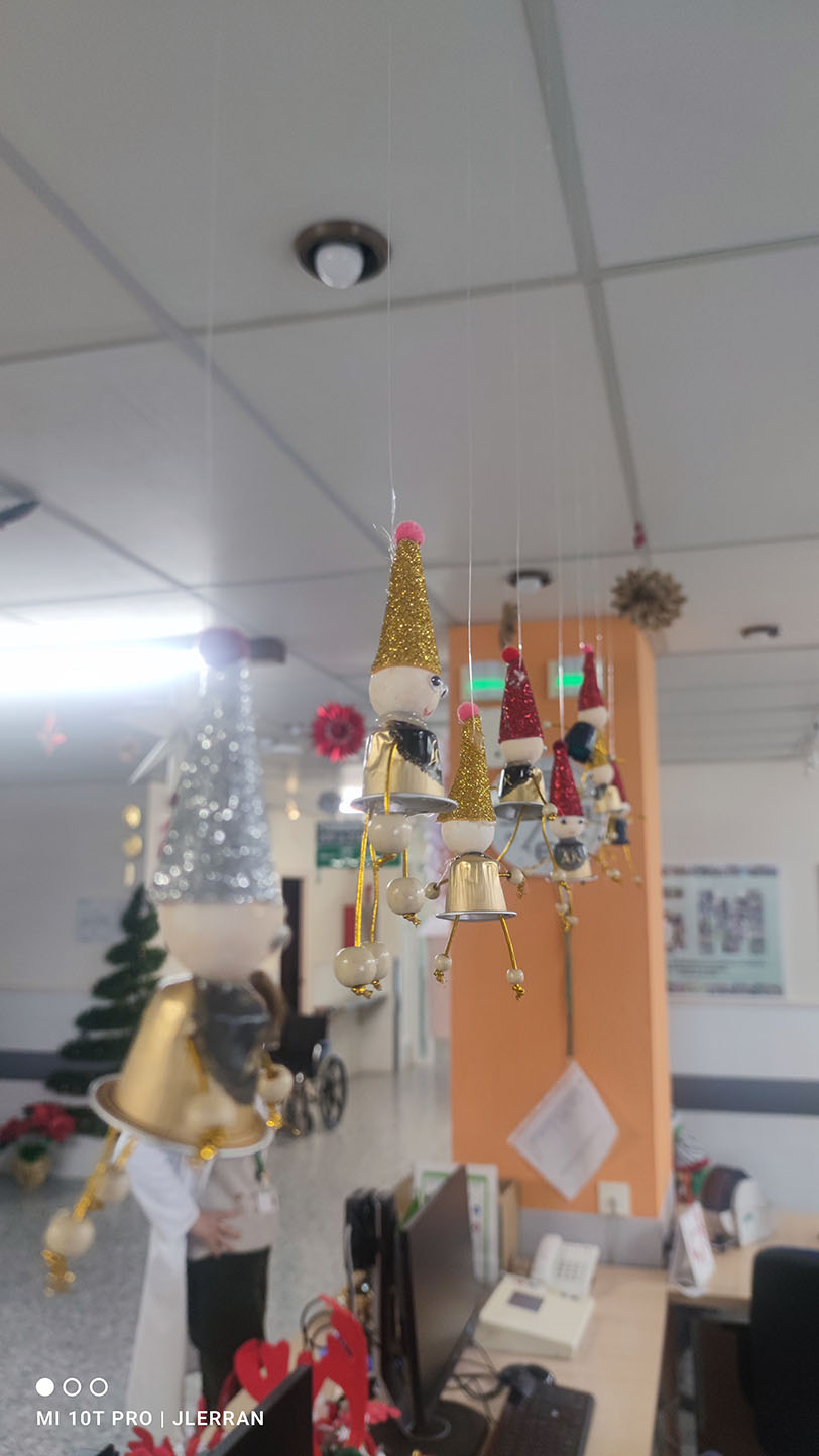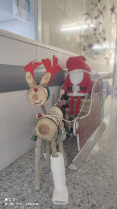 La imaginación y destreza del personal se reflejan en cada detalle: desde un reno confeccionado con escayolas por la unidad de Traumatología, hasta un árbol de Navidad elaborado con perchas, pasando por duendes hechos a mano y un portal de Belén cuidadosamente recreado. Cada elemento resalta la habilidad y el entusiasmo de los equipos para transformar materiales cotidianos en símbolos navideños cargados de significado.
