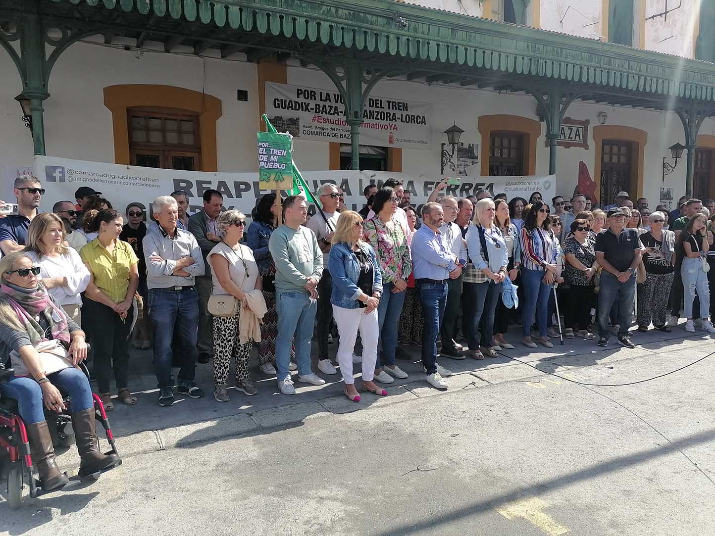 Concentración ciudadana se protesta en Baza para pedir al Gobierno que rectifique y reabra la línea férrea Guadix Baza Almanzora Lorca. Este es el titular del comunicado que nos remiten las asociaciones Amigos del Ferrocarril Comarca de Baza, Comarca de Guadix por el Tren, Empresarios del Altiplano de Granada y la Plataforma Almeriense por el Tren Público y Social, el cual reproducimos a continuación, junto a las imágenes que lo acompañan: