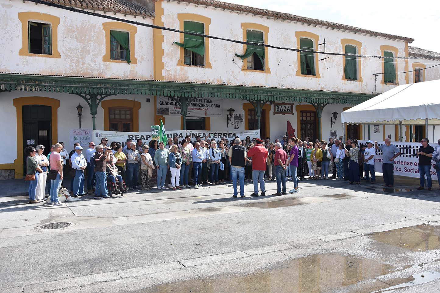 La antigua estación volvía a acoger una protesta reivindicativa esta vez, sobre la viabilidad del tren Guadix Baza- Almanzora- Lorca y, nuevamente, sin el gran respaldo popular. La Asociación Amigos del Ferrocarril Comarca de Baza, la Plataforma Comarca de Guadix por el Tren y la Asociación de Empresarios vuelven a responder al nuevo paso que ha dado el Ministerio de Transportes, con una decisión que habla de que esta línea no es viable, sobre todo a nivel económico, y que, si acaso, se volverá a estudiar este asunto a partir del 2030. La respuesta inmediata, una convocatoria que supone el inicio de una renovación de la lucha por el logro de un claro objetivo: la vuelta del tren a Baza y a las poblaciones del eje que va de Guadix a Lorca, por el valle del Almanzora.