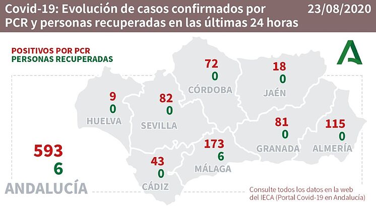 Los 81 casos confirmados en el parte de la Consejería de Salud de la Junta remitido este domingo son un número similar al de las últimas semanas de marzo y suponen una cifra muy seria, en consonancia con los datos de Andalucía, donde la pandemia ha rebrotado con fuerza y este domingo se han notificado 593 casos.