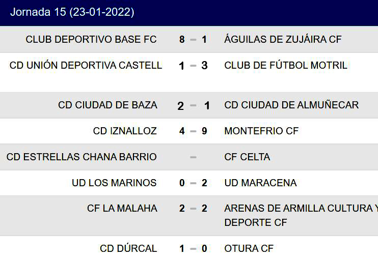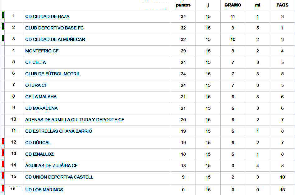 Resultados y clasificación en el Grupo granadino de la Segunda Andaluza Sénior de fútbol:
