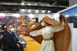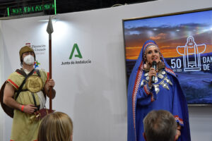 La presentación de Baza ha arrancado con una intervención del alcalde de Baza, Manolo Gavilán, acompañado de la concejala de Turismo, Mari Carmen González, y de las figuras de la Dama de Baza y del Guerrero, representadas por Vanesa Mesas y José Lorente. En ella ha dado a conocer todo lo que esta efeméride ofrece al visitante y a la propia ciudad. “Desde Baza hemos decidido traer a este escaparate otro escaparate; o una ventana a nuestro pasado, que en realidad es también es una ventana a nuestro futuro. Hemos decidido mostrar al mundo todo lo que supone para nuestra ciudad la celebración del 50 Aniversario del Descubrimiento de la Dama de Baza con la intención de posicionarnos como un referente de la cultura íbera”.