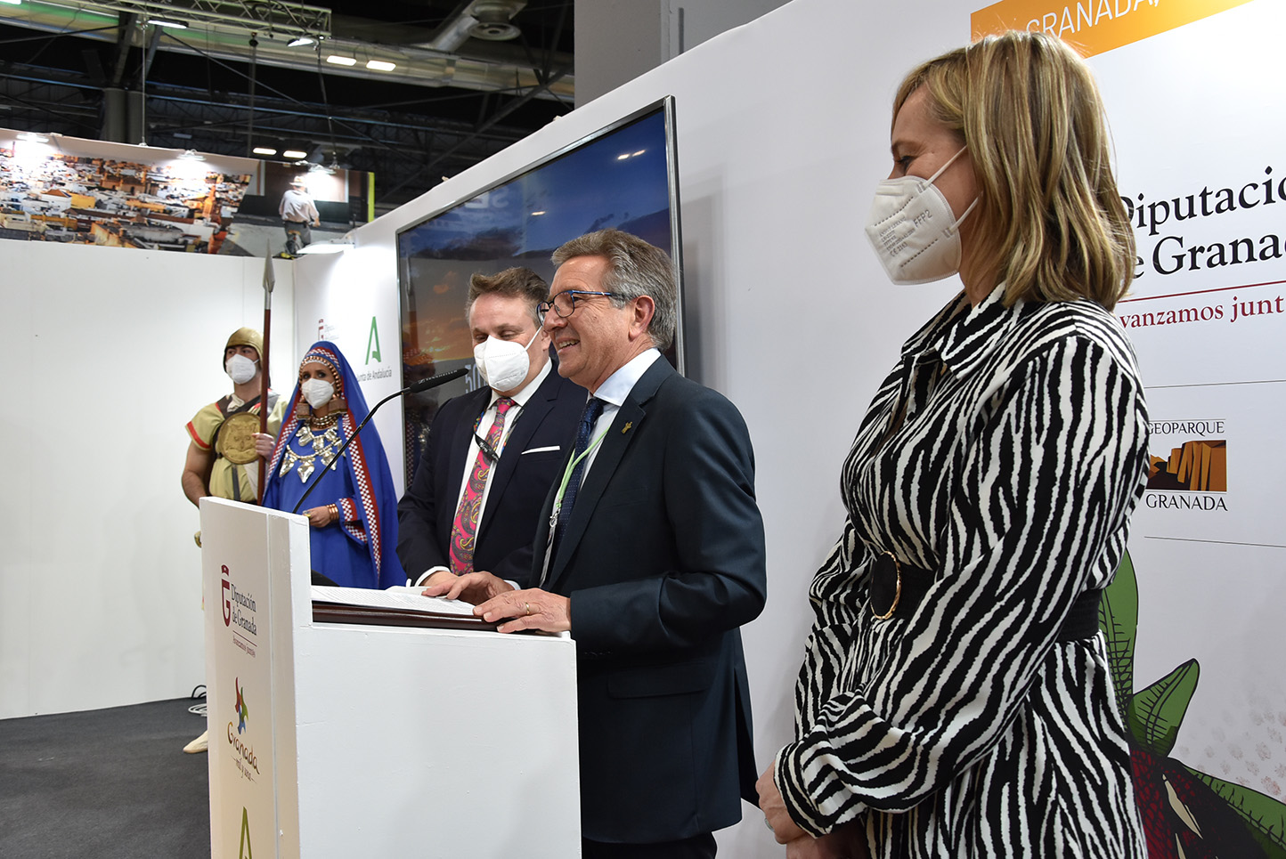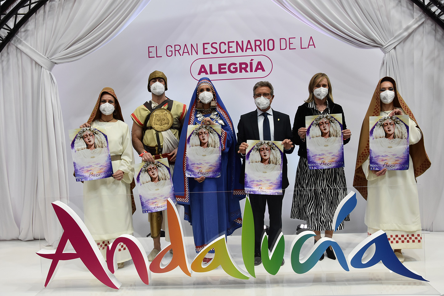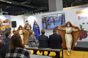 La presentación de Baza ha arrancado con una intervención del alcalde de Baza, Manolo Gavilán, acompañado de la concejala de Turismo, Mari Carmen González, y de las figuras de la Dama de Baza y del Guerrero, representadas por Vanesa Mesas y José Lorente. En ella ha dado a conocer todo lo que esta efeméride ofrece al visitante y a la propia ciudad. “Desde Baza hemos decidido traer a este escaparate otro escaparate; o una ventana a nuestro pasado, que en realidad es también es una ventana a nuestro futuro. Hemos decidido mostrar al mundo todo lo que supone para nuestra ciudad la celebración del 50 Aniversario del Descubrimiento de la Dama de Baza con la intención de posicionarnos como un referente de la cultura íbera”.