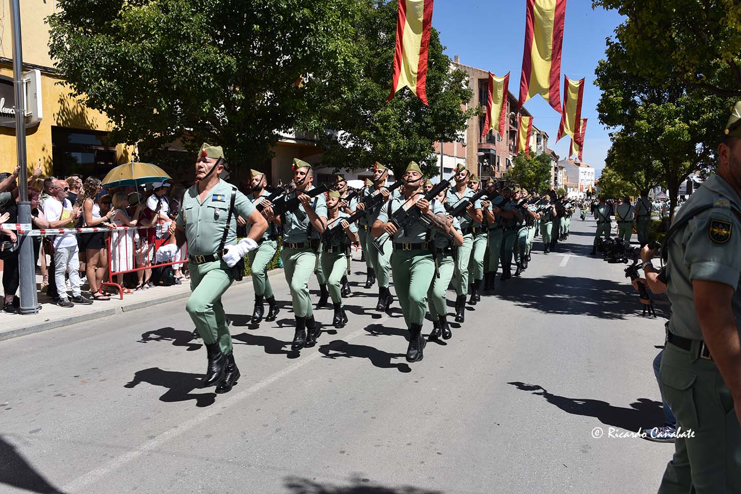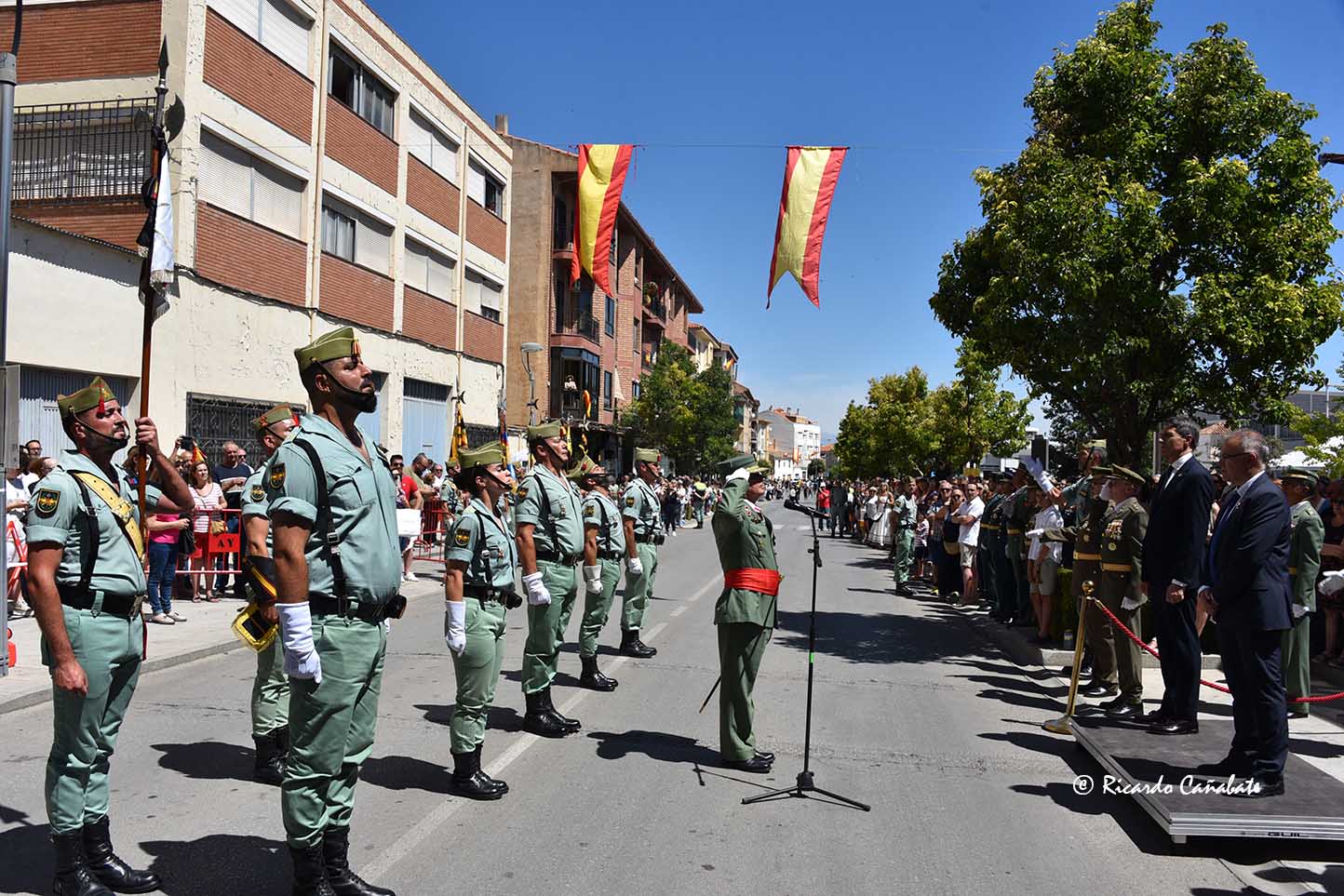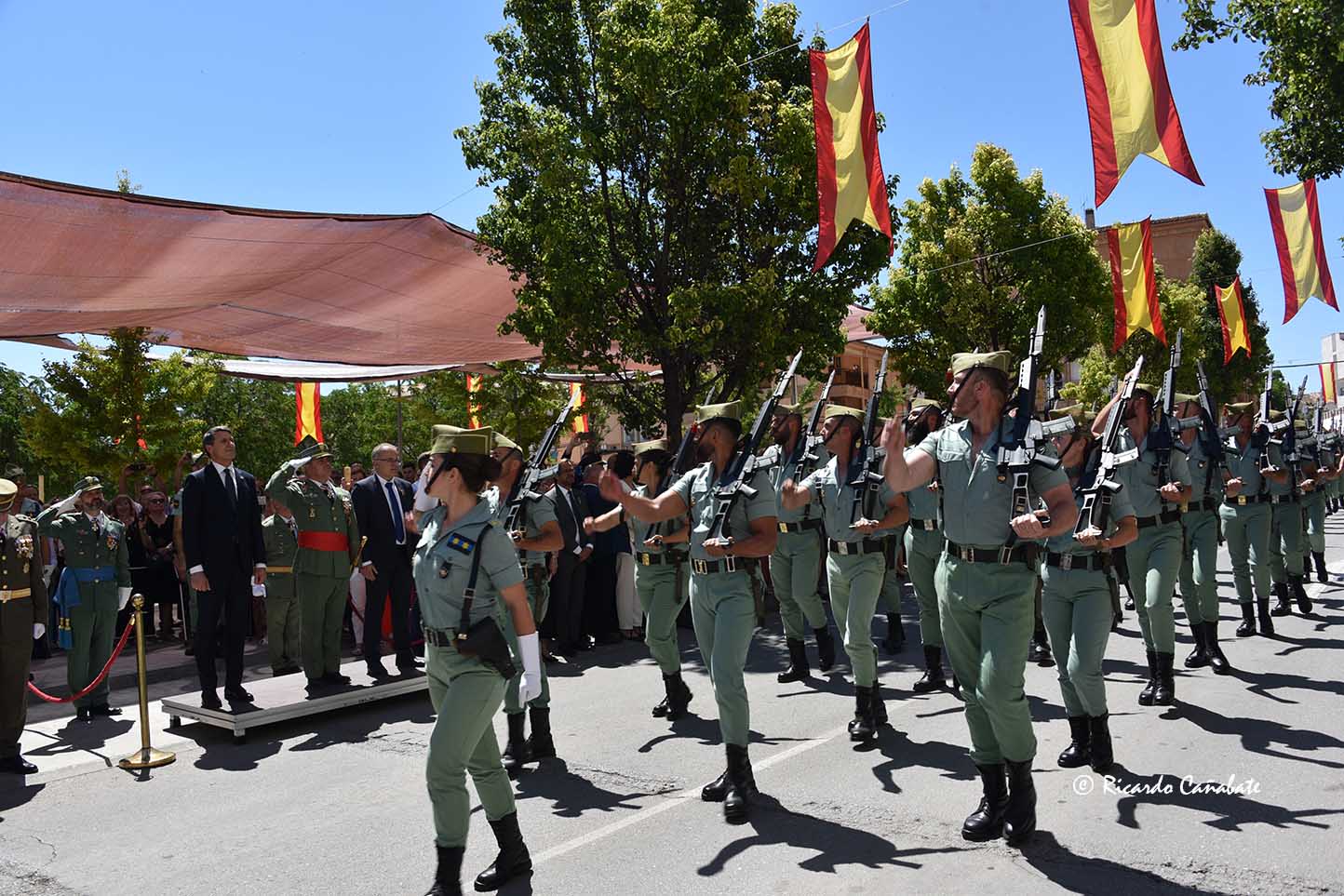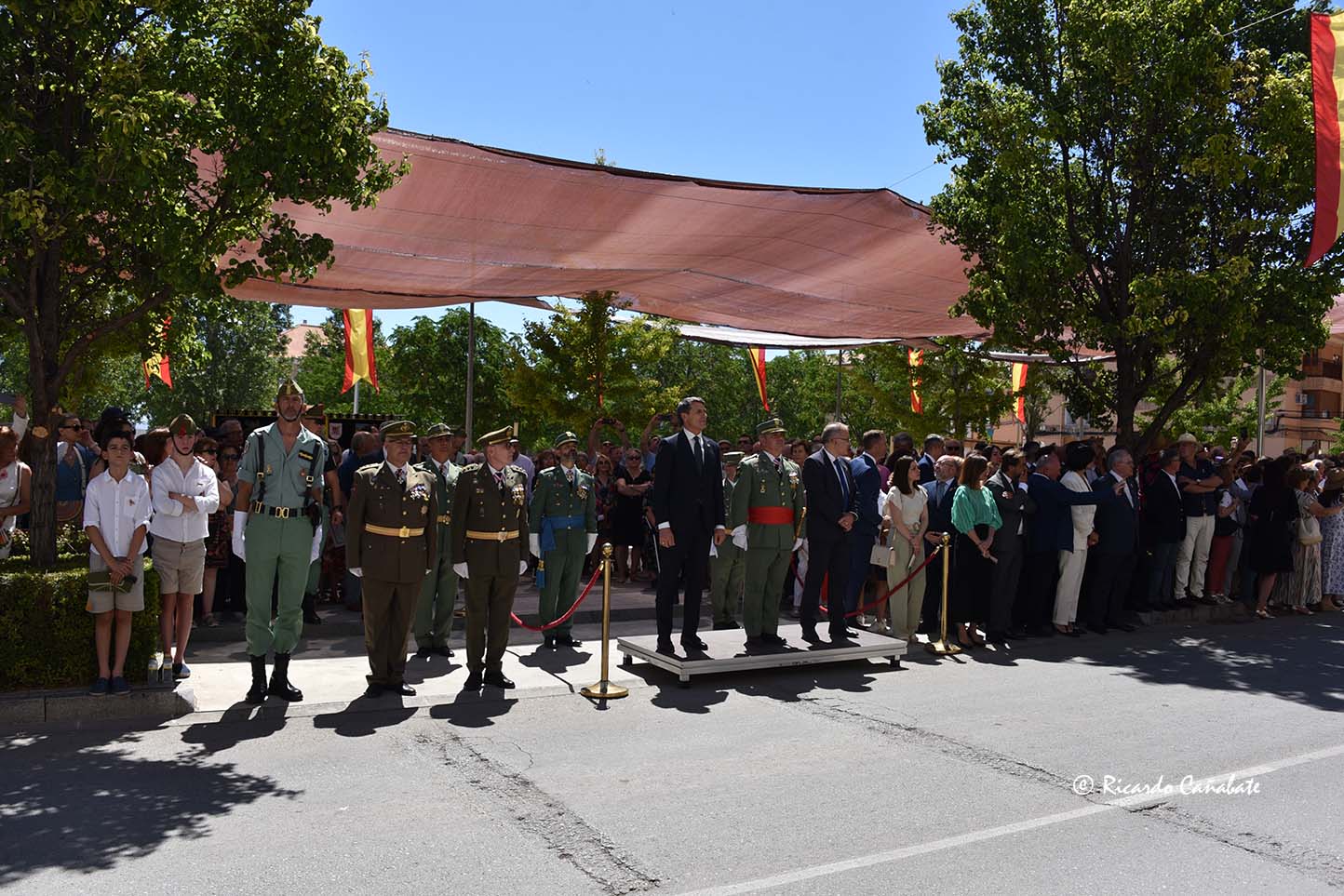 Se inició la mañana con un izado de bandera a cargo del piquete de honores de La Legión, al que le continuó el acto solemne de Jura de Bandera en el parque de la Constitución de Baza. Una vez formada la fuerza y sin solución de continuidad, se procedió a rendir honores a la autoridad, lectura del artículo de la Real Orden y efemérides, toma del juramento o promesa, Jura de Bandera de personal civil y alocución del general Carreras. Posteriormente, se rindieron los correspondientes honores a los que dieron su vida por España, se entonó la Canción del Legionario y se recitaron dos Espíritus del Credo Legionario, poniendo el colofón el desfile a pie frente a la tribuna presidencial, por parte de las unidades participantes.