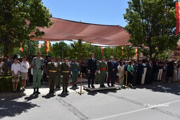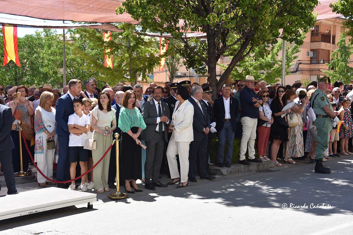 El izado oficial estuvo presidido por el General Jefe de la Brigada “Rey Alfonso XIII” de la Legión, José Agustín Carrera, y el alcalde de Baza, Pedro J. Ramos, junto a su Equipo de Gobierno  y acompañados de la consejera de Fomento de la Junta de Andalucía, Rocío Díaz, y los delegados territoriales del Gobierno, Desarrollo Educativo y Fomento, Antonio Granados, Mª José Martín y Antonio Ayllón respectivamente. Presentes también en el acto los representantes de las fuerzas de seguridad de la ciudad.