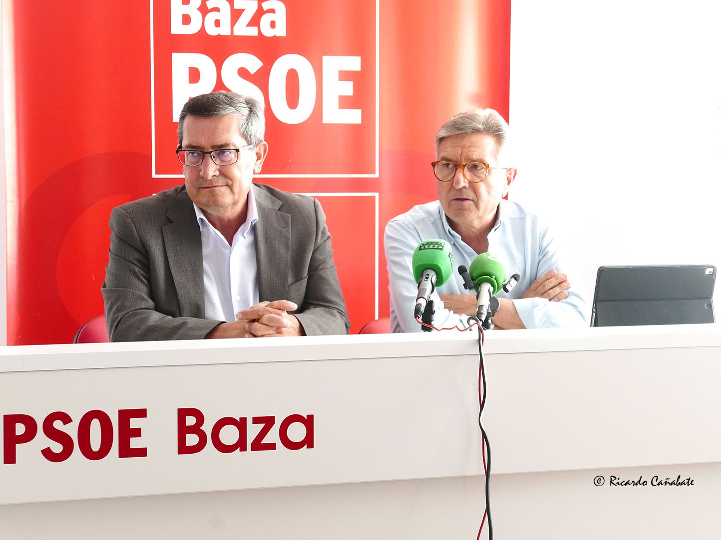 En Baza, junto a los parlamentarios andaluces, Olga Manzano y Gerardo Sánchez, el secretario general del PSOE bastetano, Manuel Gavilán y los alcaldes de Cúllar y Benamaurel; el socialista ha reclamado “realidad y certezas y menos propaganda y trilerismo”.
