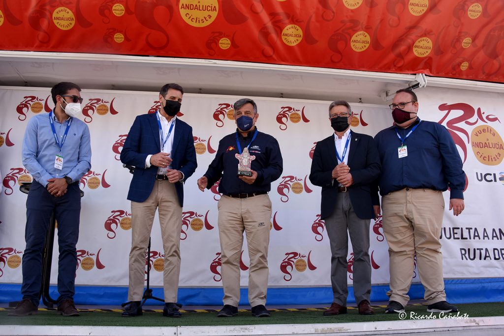 Antes de proceder a la salida, las autoridades participaron en el acto de entrega de varios distintivos: al Ciclista con más opciones a ganar, el colombiano Miguel Ángel ‘Superman’ López (Movistar), el alcalde Manolo Gavilán le entregó una Dama de Baza; el Presidente de Diputación, José Entrena, fue el encargado de entregar la Dama de Baza al primer ciclista andaluz, Carlos Rodríguez, granadino de La Zubia y promesa nacional con solo 20 años; y al mejor deportista andaluz, Alvaro Cuadros (Caja Rural-Seguros RGA), le hicieron entrega de otra Dama de Baza el concejal de Deportes, Antonio Vallejo, y el diputado provincial, Manolo Guirado.