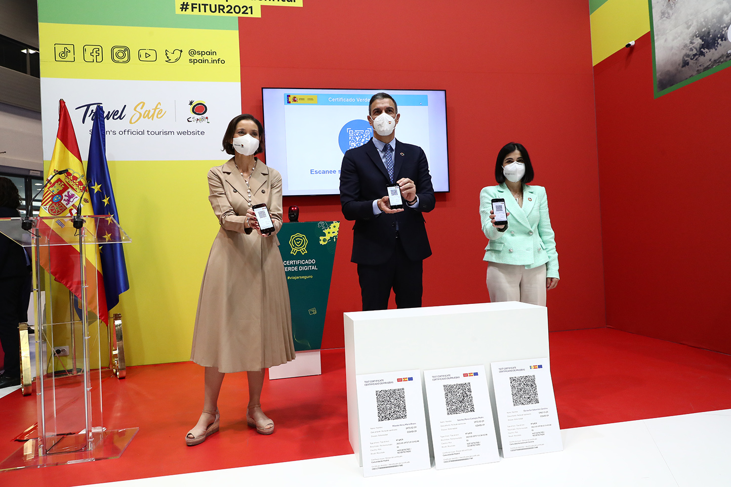 Darias reconoce el esfuerzo del SNS y sus profesionales para poner en funcionamiento el Certificado Digital UE COVID, previsto para el próximo 1 de julio. La ministra de Sanidad, Carolina Darias, ha realizado un reconocimiento a todo el Sistema Nacional de Salud y, especialmente, a sus profesionales por el esfuerzo que están realizando para la puesta en marcha, el próximo 1 de julio, del Certificado Digital UE COVID, durante su intervención en el acto de presentación del Certificado, que ha presidido el presidente del Gobierno, Pedro Sánchez, en el stand de Turespaña en FITUR 2021.