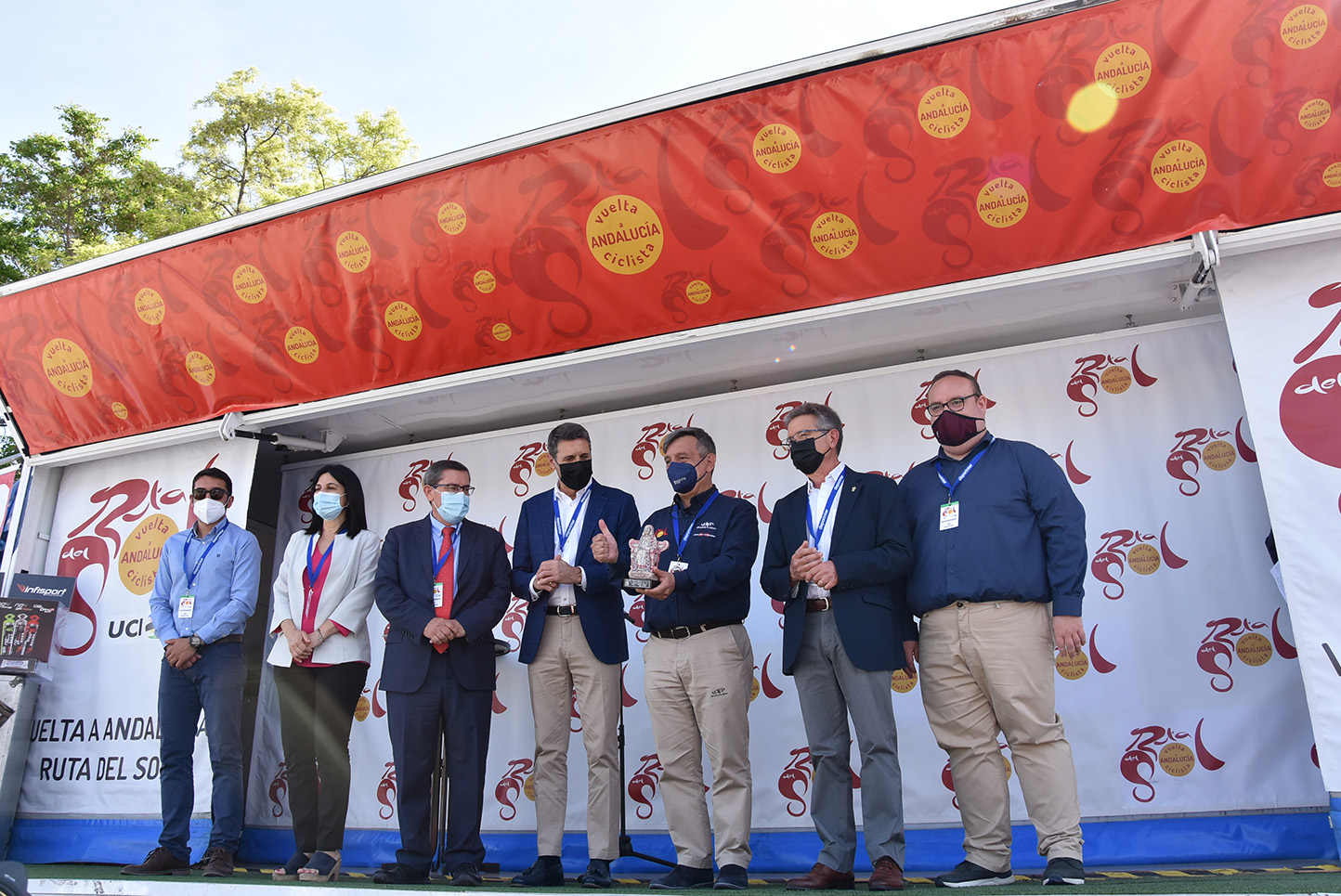Antes de proceder a la salida, las autoridades participaron en el acto de entrega de varios distintivos: al Ciclista con más opciones a ganar, el colombiano Miguel Ángel ‘Superman’ López (Movistar), el alcalde Manolo Gavilán le entregó una Dama de Baza; el Presidente de Diputación, José Entrena, fue el encargado de entregar la Dama de Baza al primer ciclista andaluz, Carlos Rodríguez, granadino de La Zubia y promesa nacional con solo 20 años; y al mejor deportista andaluz, Alvaro Cuadros (Caja Rural-Seguros RGA), le hicieron entrega de otra Dama de Baza el concejal de Deportes, Antonio Vallejo, y el diputado provincial, Manolo Guirado.