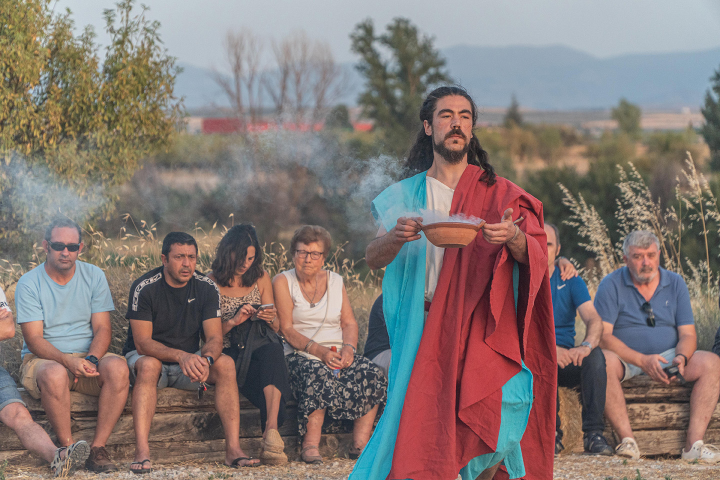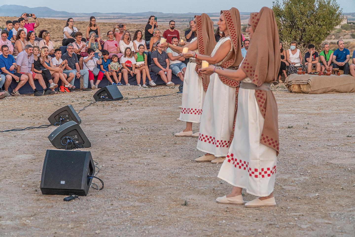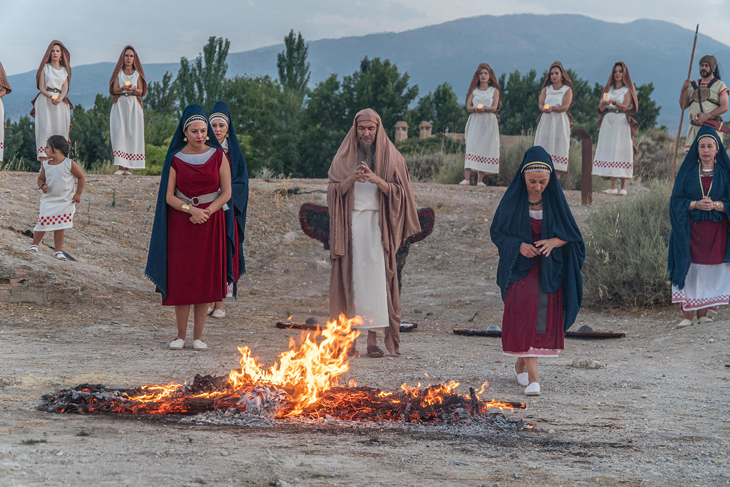 El ritual de cremación de la Dama de Baza volvió a contar con el seguimiento de un buen número de bastetanos. Bastetanos que se encontraban en el Cerro del Santuario, muy cerca de donde se halló la tumba 155 en la que estaba la Dama de Baza, dispuestos a contemplar la escenificación del ritual de cremación de la imagen representada por la escultura ibérica, al cumplirse ya 51 años de su hallazgo.