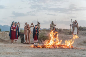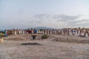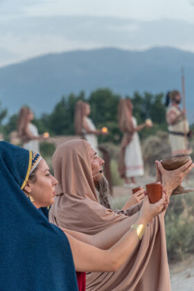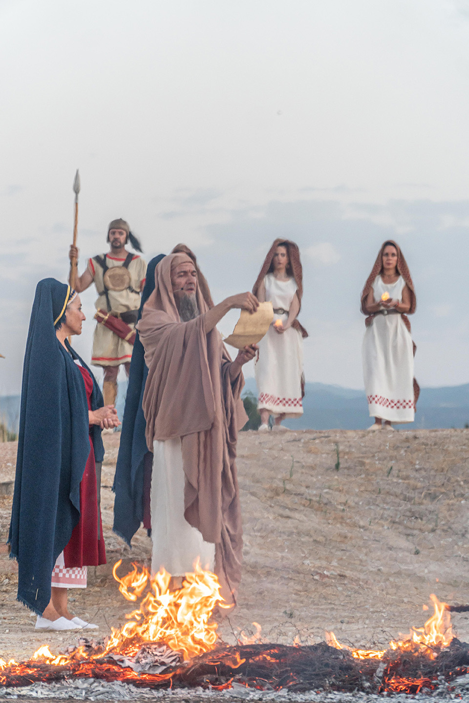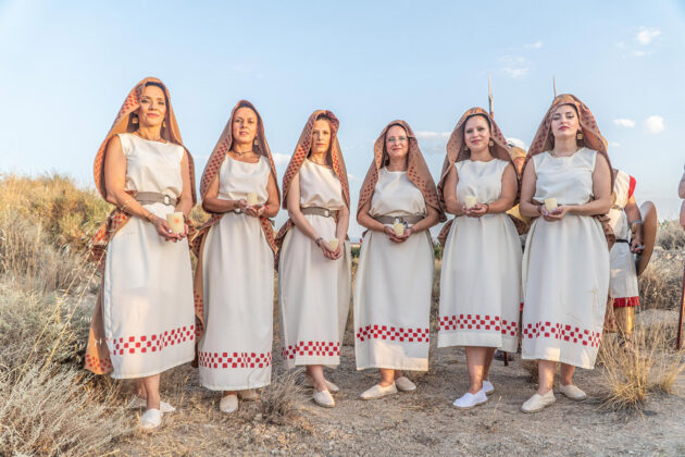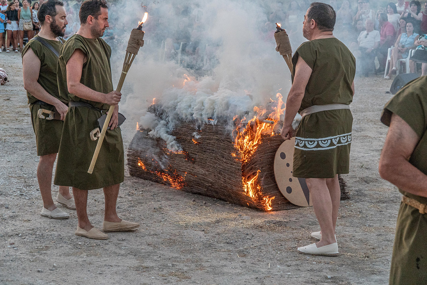 El ritual de cremación de la Dama de Baza volvió a contar con el seguimiento de un buen número de bastetanos. Bastetanos que se encontraban en el Cerro del Santuario, muy cerca de donde se halló la tumba 155 en la que estaba la Dama de Baza, dispuestos a contemplar la escenificación del ritual de cremación de la imagen representada por la escultura ibérica, al cumplirse ya 51 años de su hallazgo.