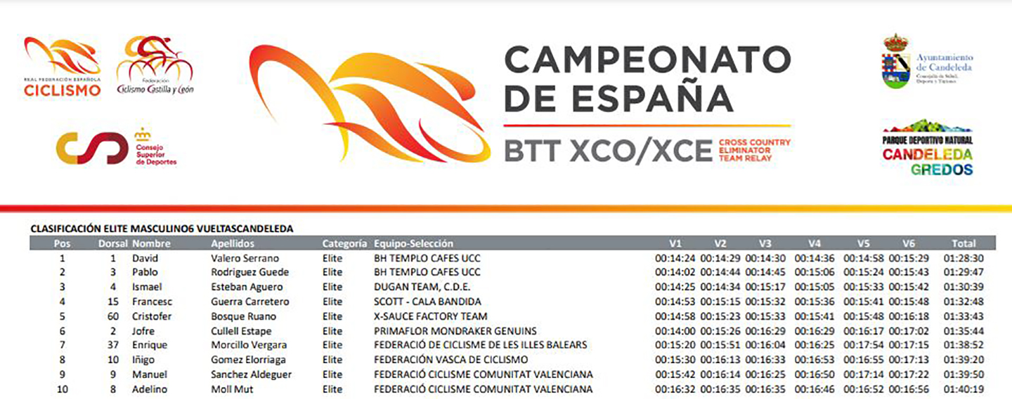 Cuando se dio la salida en la carrera élite masculina, todas las miradas apuntaban a David Valero, que llegaba a Candeleda en un gran estado de forma tras los buenos resultados cosechados en Copa del Mundo. El de Baza tenía como objetivo alcanzar los ocho títulos nacionales de José Antonio Hermida y no ha defraudado en las seis vueltas que han tenido que dar en el circuito de 4,6 kilómetros.