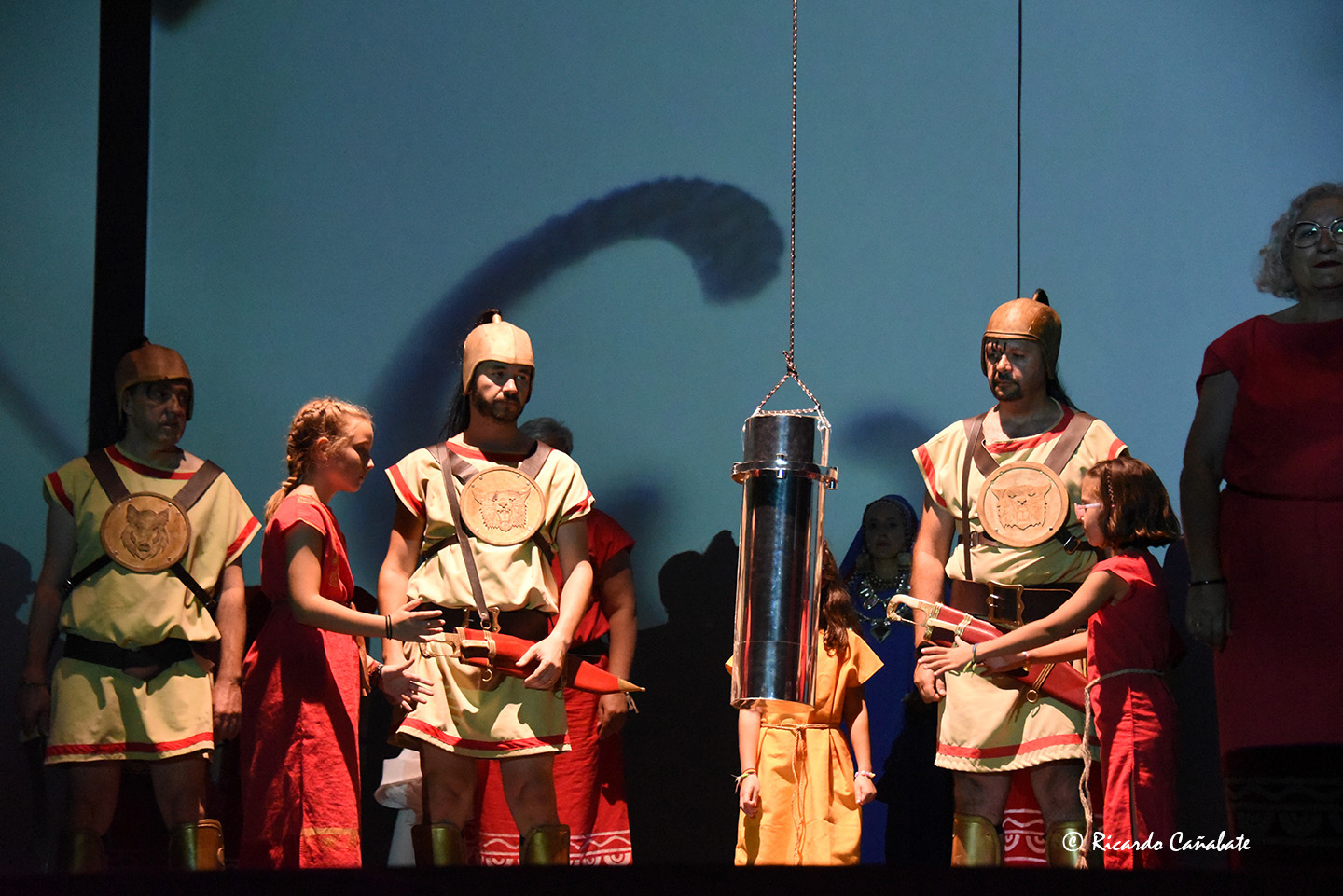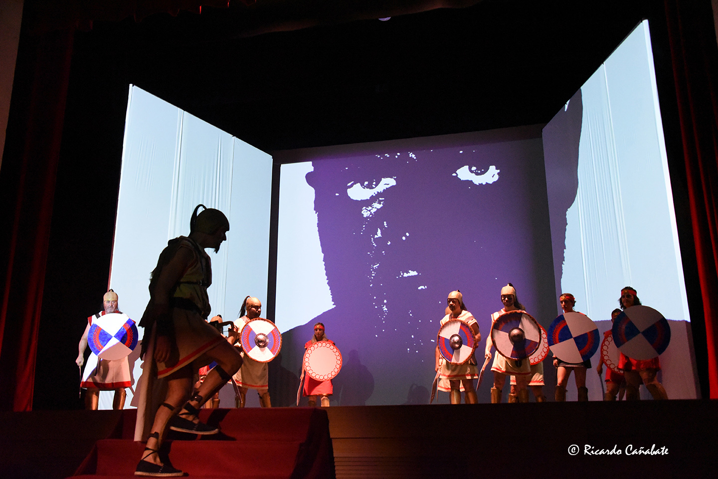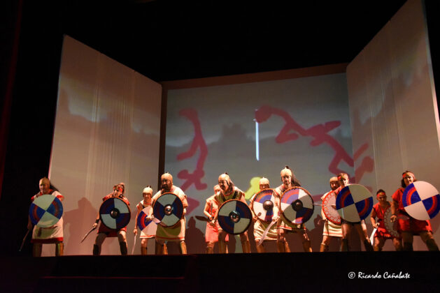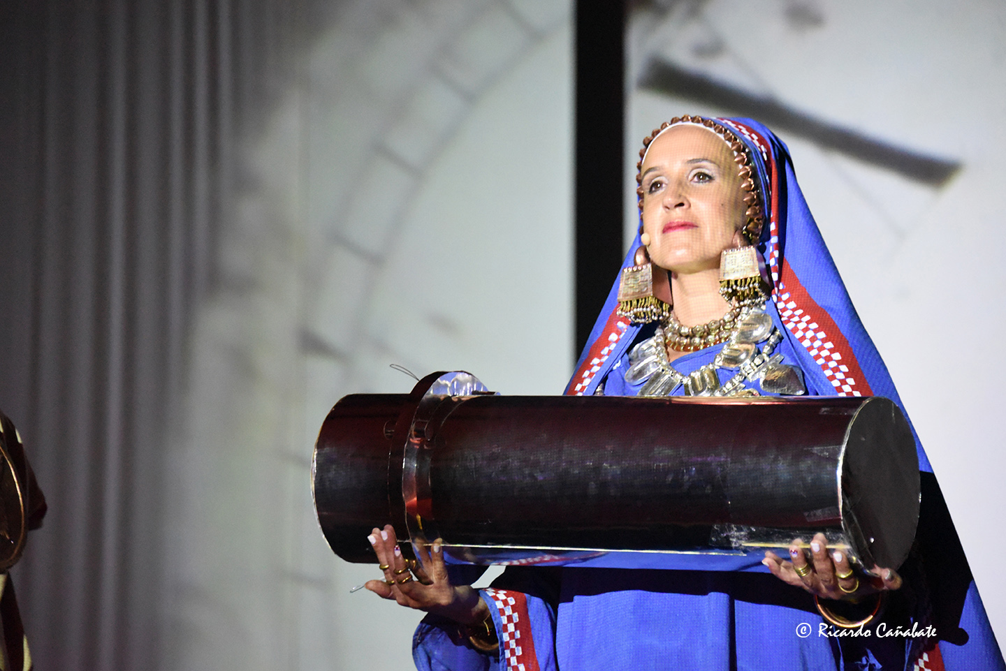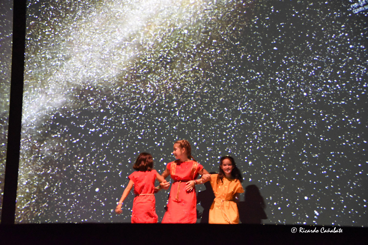 A continuación, y tras un breve descanso, se escenificó un espectáculo puesto en escena por la Academia de las Artes Escénicas y en el que la luz y la imagen cobraron un especial protagonismo, a la par que ofrecían una serie de metafóricos mensajes que llevaban a pensar en nuestro origen, el origen de la propia vida y la llegada de la Dama de Baza a una ciudad en la que todas sus mujeres son Damas.
