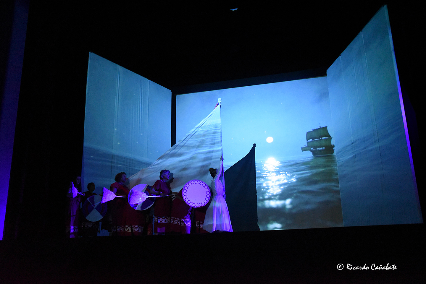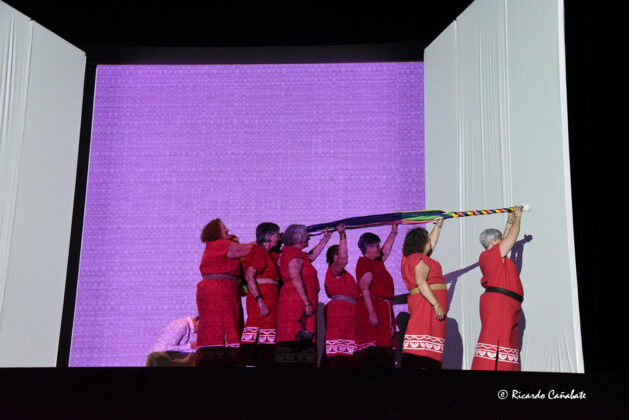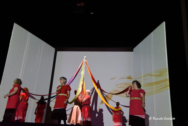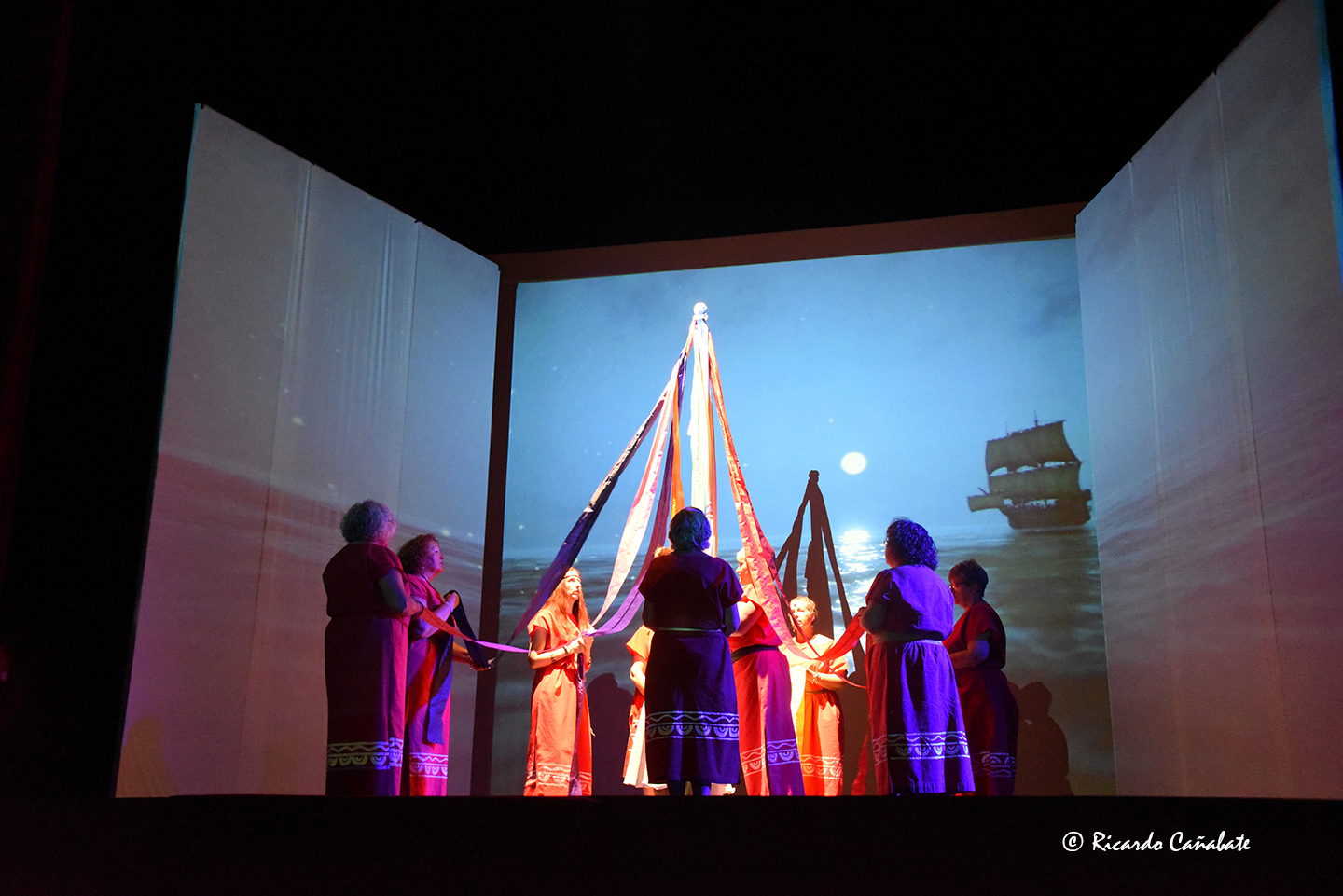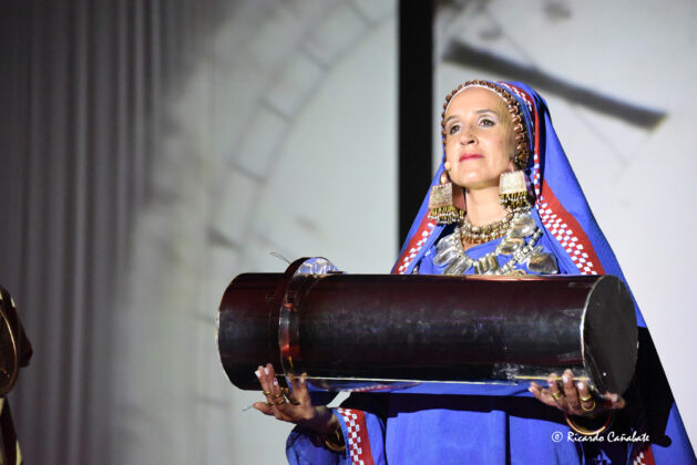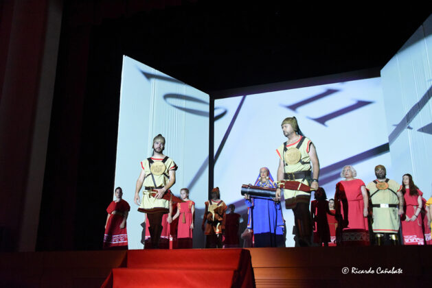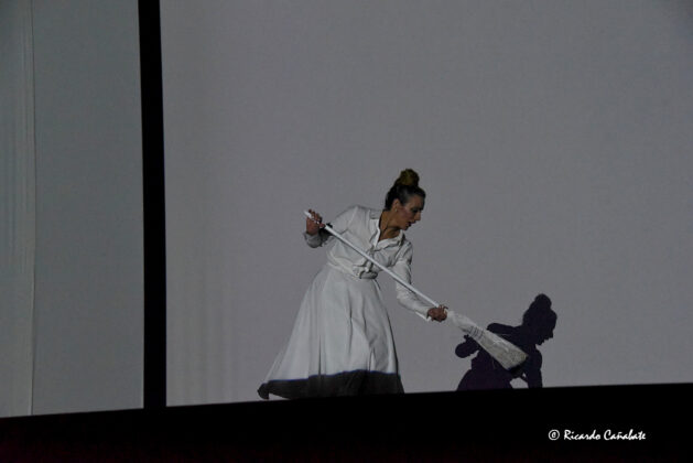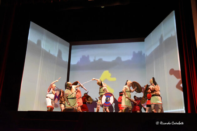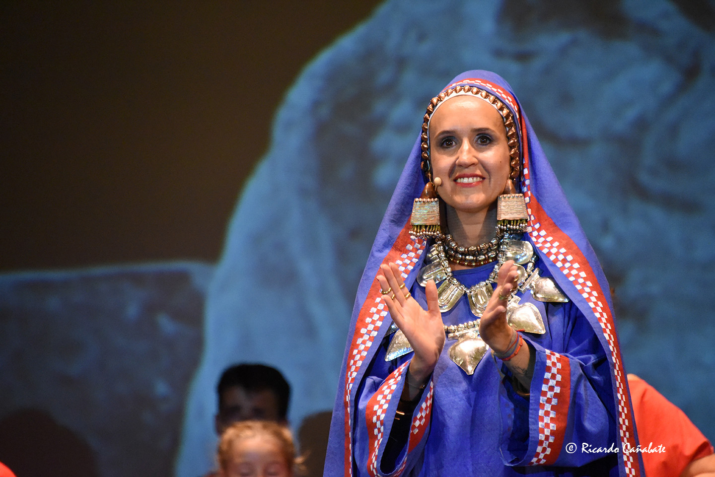 A continuación, y tras un breve descanso, se escenificó un espectáculo puesto en escena por la Academia de las Artes Escénicas y en el que la luz y la imagen cobraron un especial protagonismo, a la par que ofrecían una serie de metafóricos mensajes que llevaban a pensar en nuestro origen, el origen de la propia vida y la llegada de la Dama de Baza a una ciudad en la que todas sus mujeres son Damas.