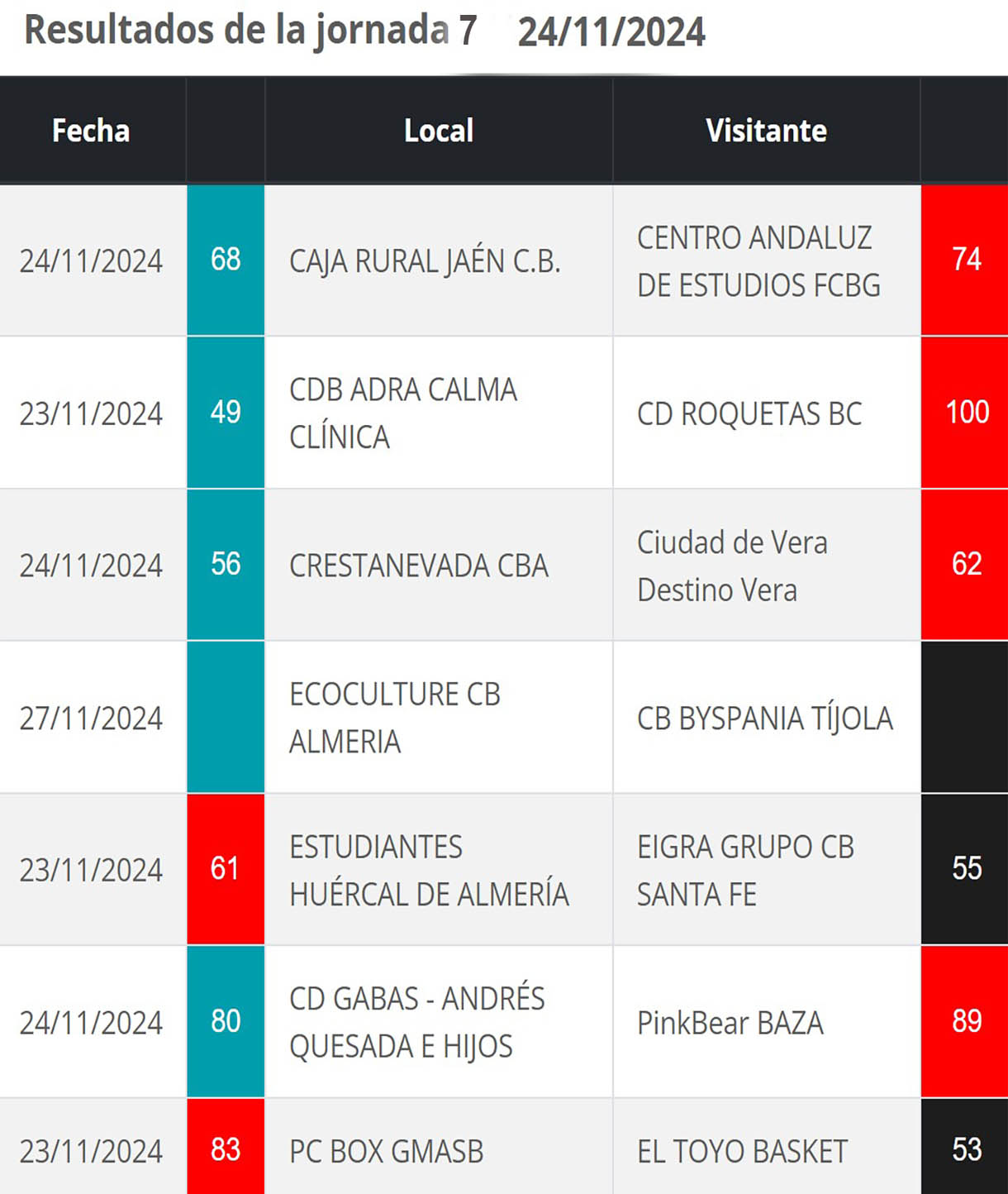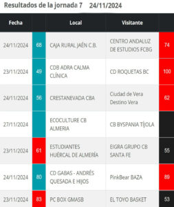Resultados y clasificación tras la jornada 7 en el grupo C de la Liga Nacional de Baloncesto. (Clicar en las imágenes para ampliarlas)
