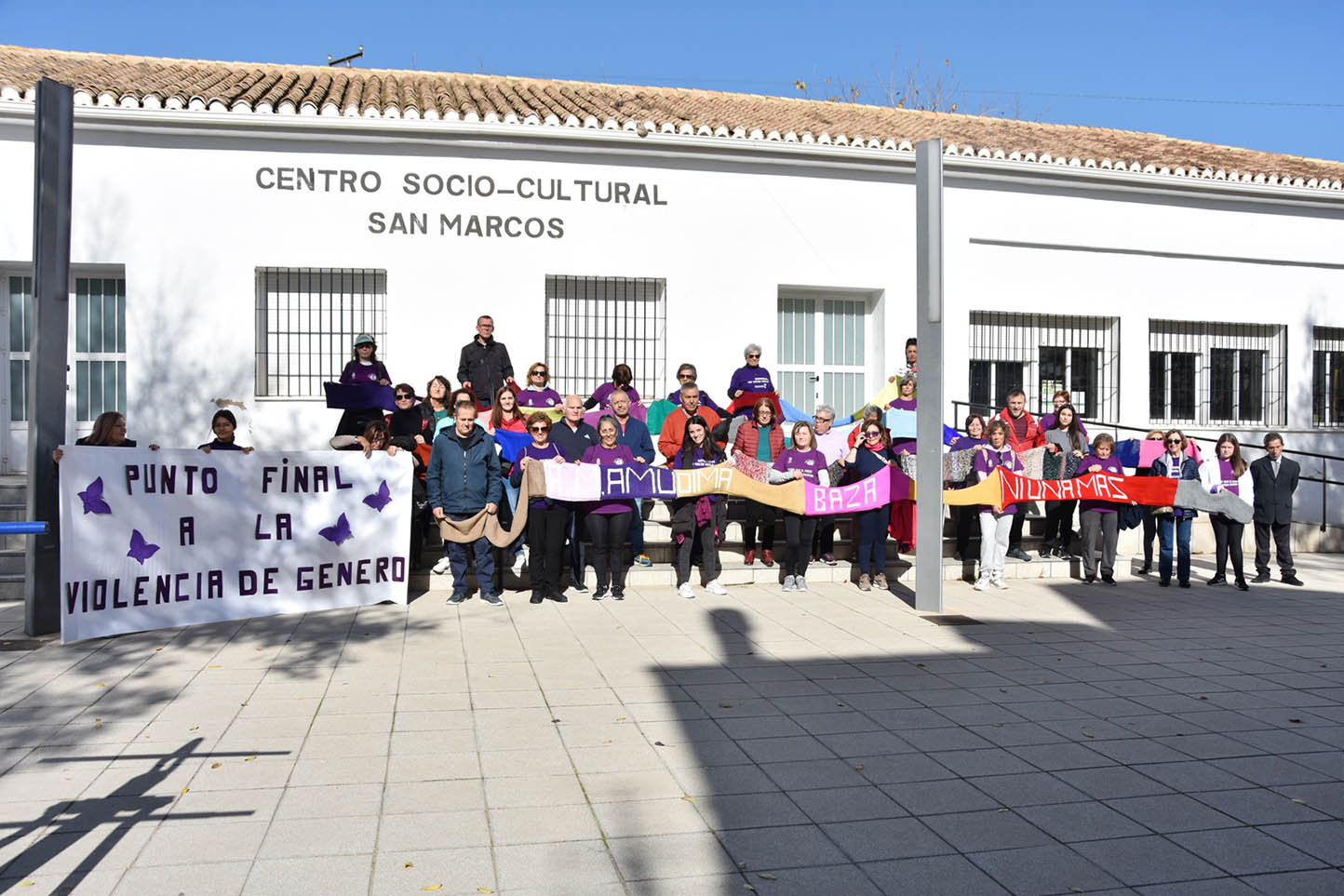 La marcha se inició con una fotografía grupal en la plaza del Centro Sociocultural de San Marcos, donde las participantes sostuvieron una pancarta con el lema “Punto final a la violencia de género”. Sin embargo, el elemento más simbólico de la jornada fue una larga bufanda tejida por las socias de Amudima, con la frase “Ni una más” en memoria de las mujeres asesinadas. La marcha recorrió las principales calles de Baza y concluyó en la Plaza Mayor, donde se leyó un manifiesto de protesta y se guardó un minuto de silencio en honor a las víctimas.