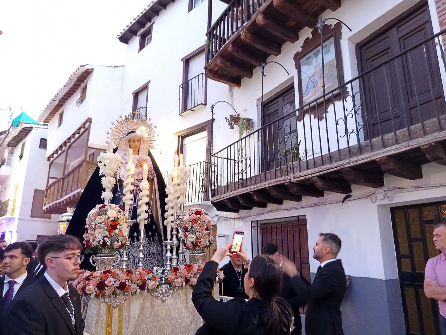 El domingo, a las 11:30 de la mañana, se ofició la Solemne Misa en honor a la Virgen de los Dolores en el mismo templo. Posteriormente, a las 12:30, se inició la procesión de regreso a la Iglesia de Santiago, acompañada musicalmente por la Banda de Música El Carmen de Dúrcal. La procesión recorrió algunas de las principales calles del municipio, como Plaza Merced, Cruz de los Caídos, Sor Matilde y Avenida de Andalucía, entre otras.