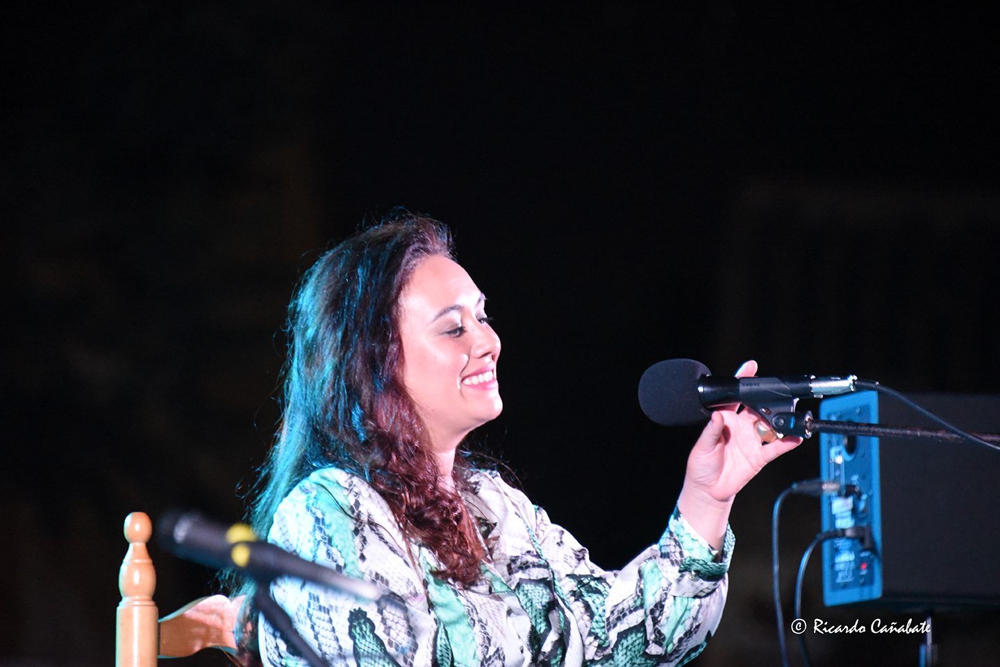 Encarna Anillo, a quien también acompañaban en el escenario las palmas de Gilberto de la Luz y Mariano Cortés, dejó ver las influencias que recibe de una tierra tan flamenca como la gaditana, de la que ofreció varios cantes en los que dejó escuchar una voz potente, primero sentada en su silla de enea y después volcando su entrega en un cante potente que acompañó con el movimiento que la hacía liberarse ante un público que siempre fue a más en sus aplausos, signo evidente de que estaba siendo cautivado y que, como ella, acabó puesto en pie para aplaudirla de forma enérgica.